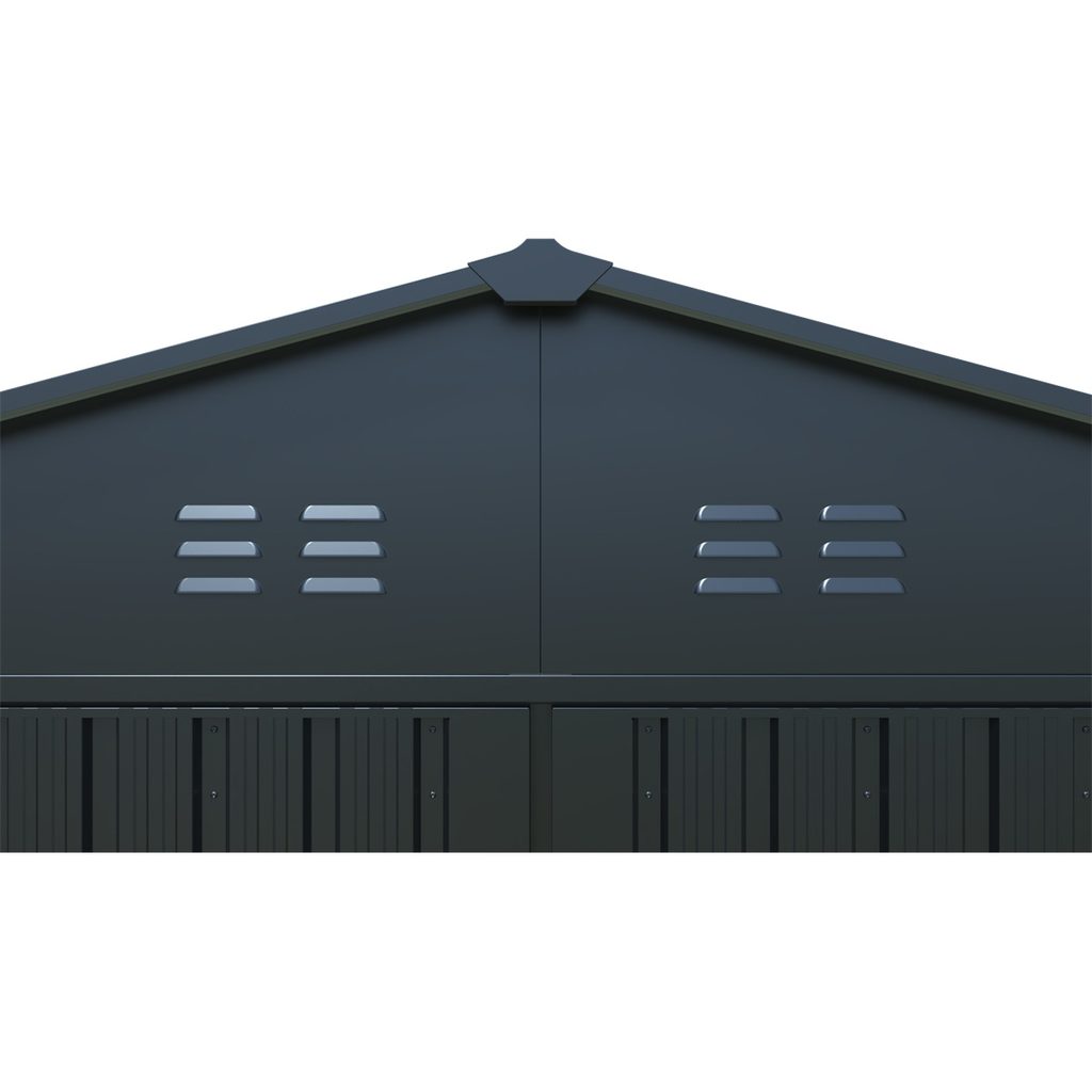 Moderní vzhled garáže/domku podtrhuje elegantní barevná kombinace s oblíbenou antracitovou barvou, která působí stylově a snadno zapadne do jakéhokoliv prostředí. Garáž/domek Riwall Anthracite PRO je skvělou volbou pro každého, kdo hledá kvalitní, odolné a praktické řešení pro skladování či parkování.