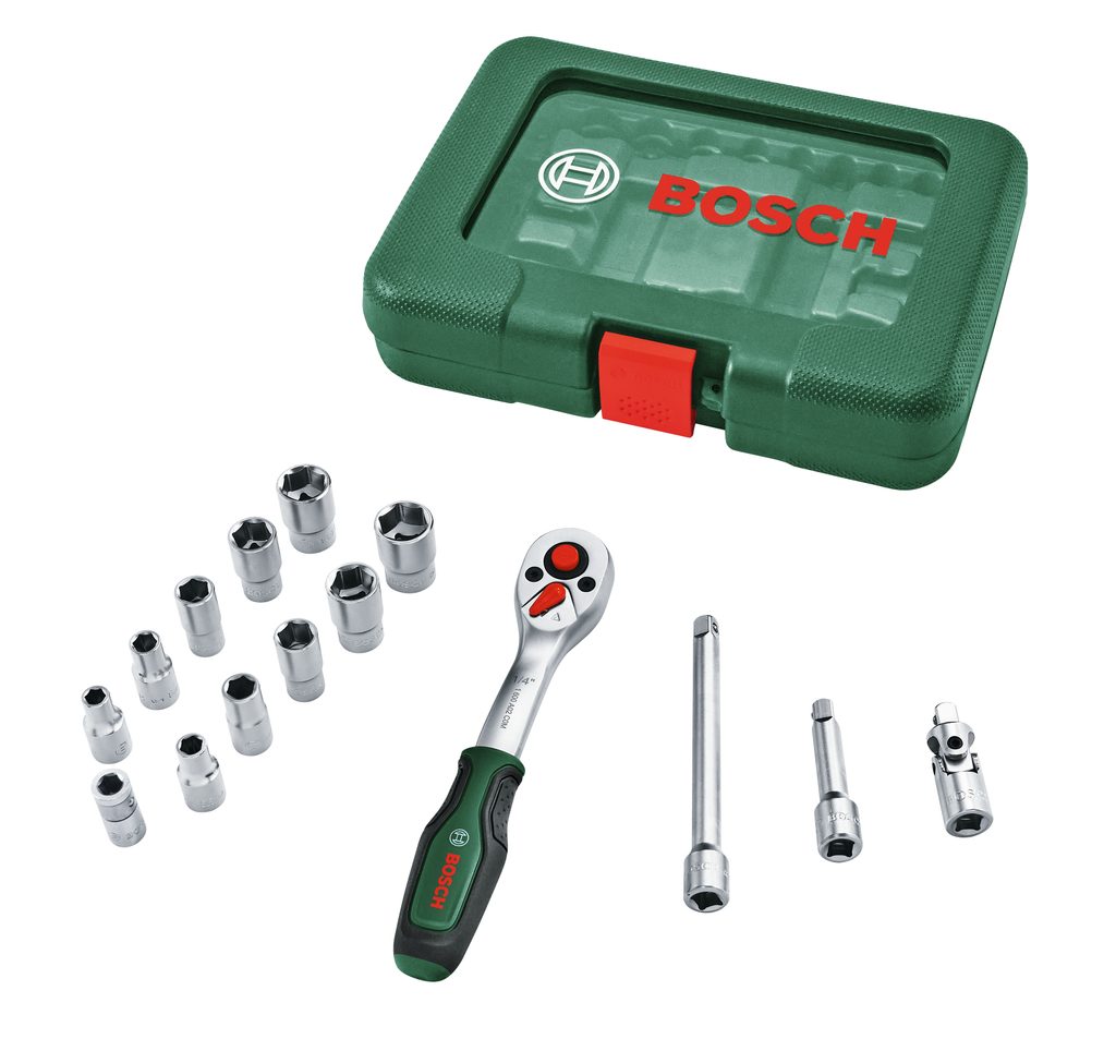 Gola sada Bosch 1600A03EG1 je kvalitní 1/4" ráčnová sada pro univerzální práce v dílně i domácnosti. Ráčna má jemný 72zubý mechanismus s pracovním úhlem 5° a max. krouticí moment až 93 Nm, takže se hodí i do stísněných prostor.