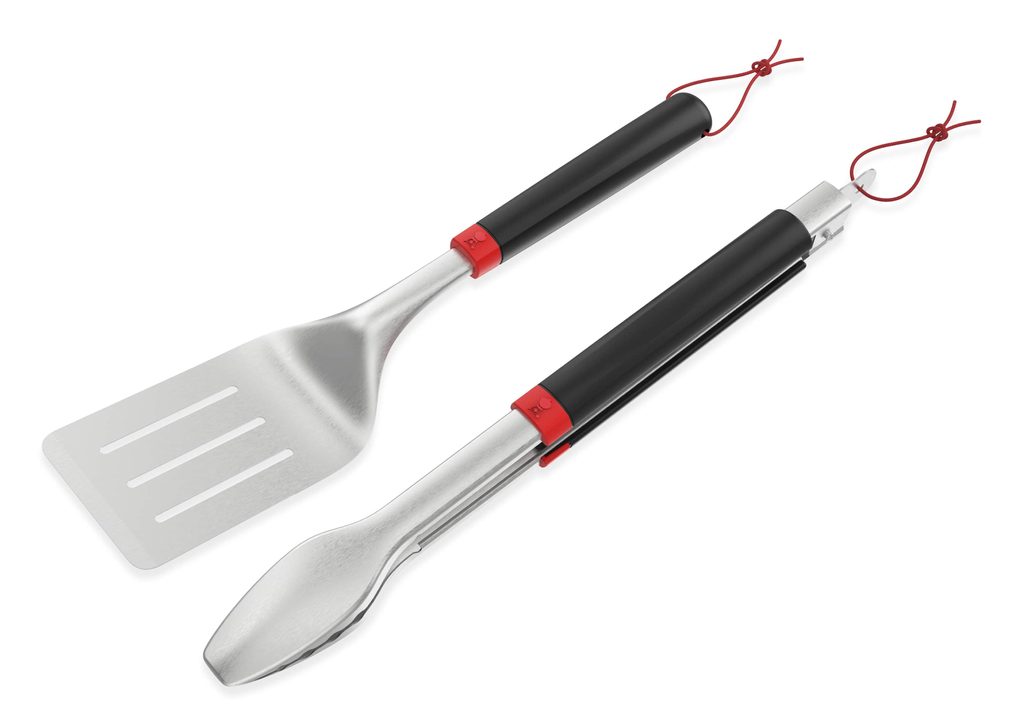 Grilovací kleště a obracečka Weber jsou praktická a odolná sada grilovacího náčiní z kvalitní nerezové oceli, která se hodí pro každodenní grilování. Pohodlné rukojeti zajišťují jistý úchop i při práci nad rozpáleným grilem. Na konci rukojetí nechybí očka pro zavěšení, takže budete mít náčiní vždy po ruce. Pro maximální pohodlí je sada vhodná i do myčky na nádobí.