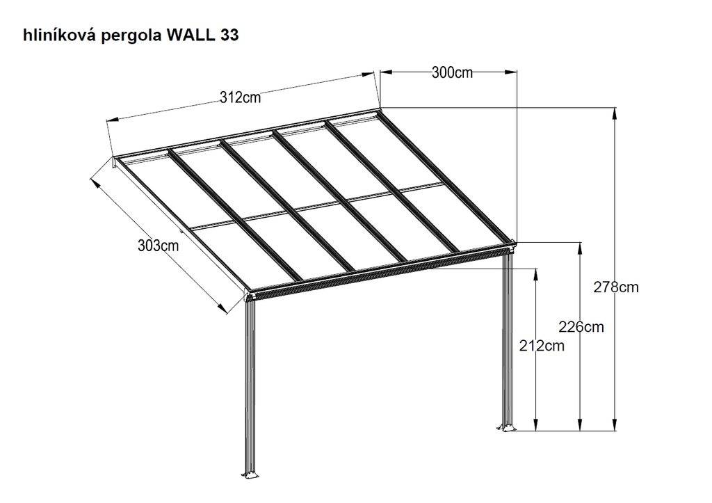 Hliníková pergola ke zdi, ve které naleznete příjemné místo odpočinku hned vedle vašeho domu. Konstrukce pergoly je z odolné hliníkové slitiny a je nastříkaná práškovou vypalovanou barvou (komaxit), a proto trvale odolává přírodním klimatickým vlivům.