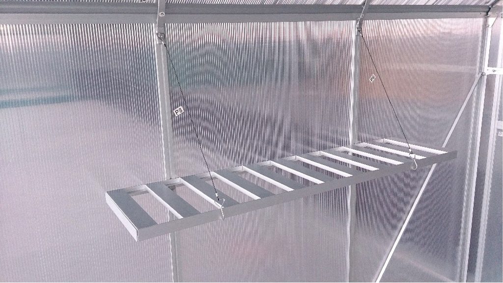 Praktická hliníková police do skleníku. Rozšíří možnosti pro pěstění. Kvalitní hliníková police z odolného hliníku. S její pomocí zvýšíte prostor pro pěstování ve skleníku.