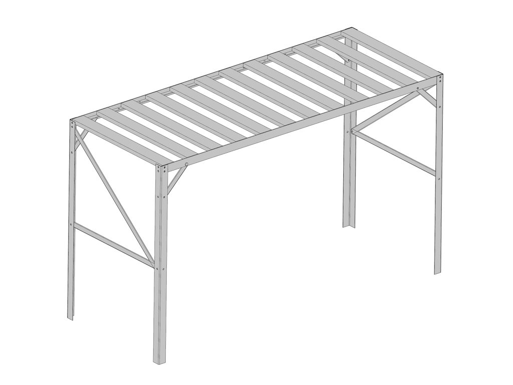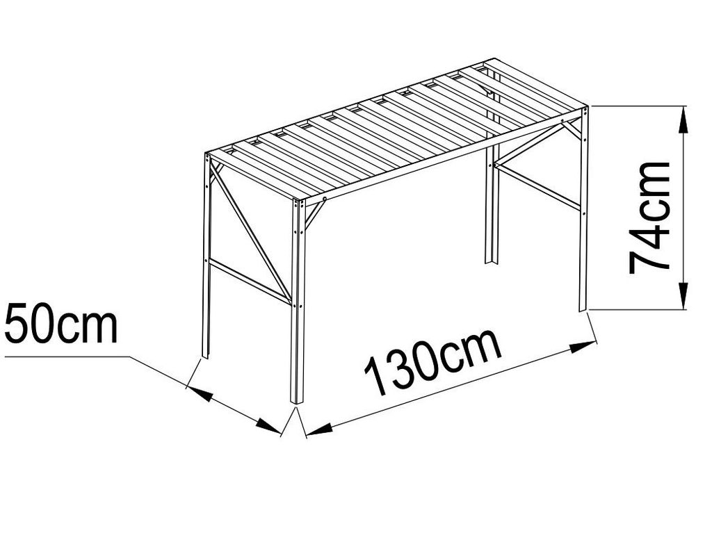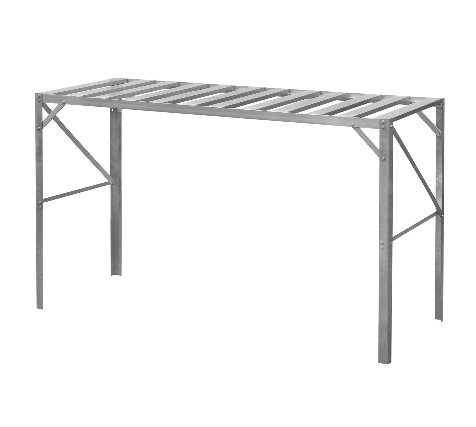 Celohliníkový jednopolicový regál stojící na zemi. Stříbrná barva. Rozměry regálu jsou d 130 x š 50 x v 74 cm. Vhodné pro skleníky všech typů. Univerzální produkt. Dodáváme v rozebraném stavu jako stavebnici.