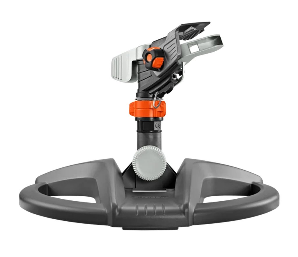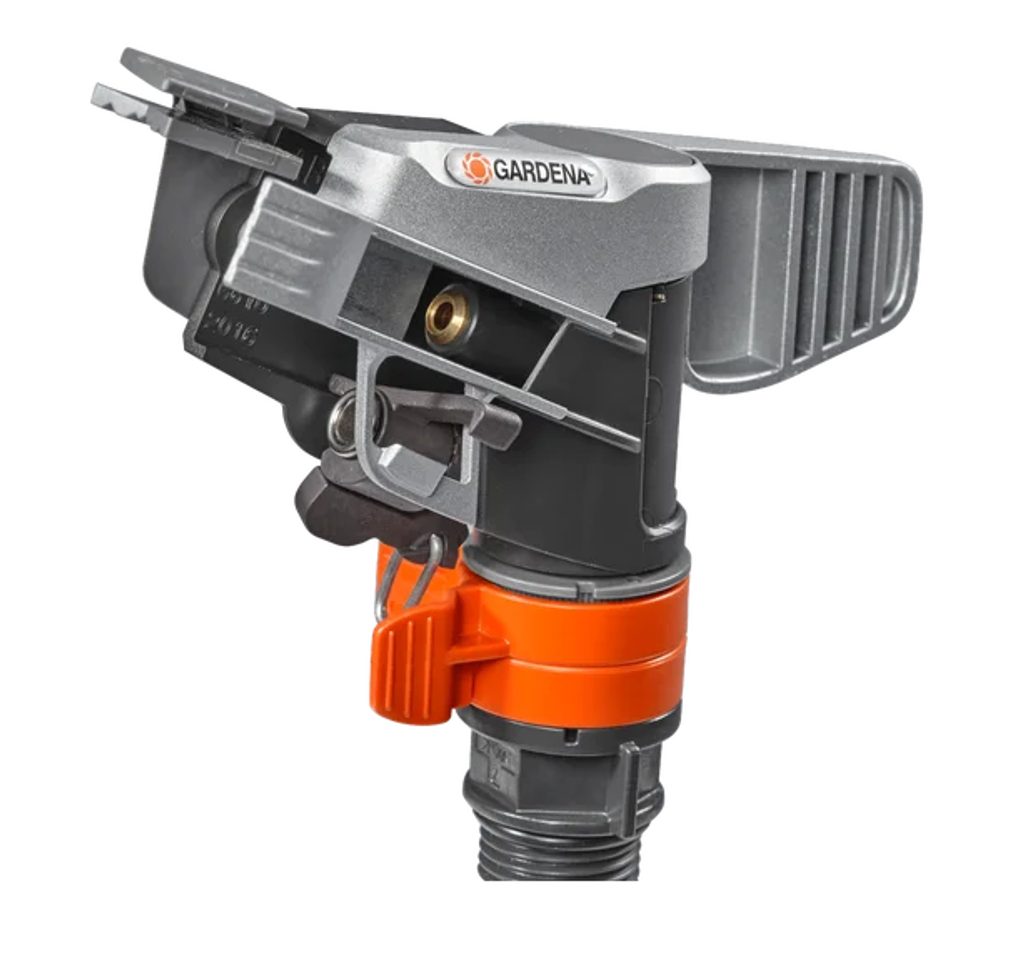 Impulzní, kruhový a sektorový zavlažovač se sáňkami řady GARDENA Premium slouží k nenáročnému zavlažování velkých ploch. Je vyrobena z robustní kombinace kovu a plastu. Díky tomu je hlavice zavlažovače velmi stabilní. Na nastavovacích kroužcích můžete s plynulým rozsahem od 25° do 360° snadno nastavit zavlažovanou výseč.