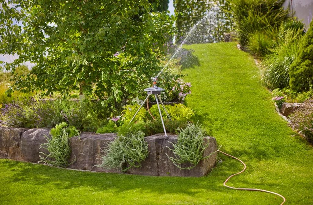 Zavlažovač je vybaven přípojkou systému Original GARDENA a koncovou krytkou. Můžete ho ihned začít používat. S přípojkou na vodní kohoutek od společnosti GARDENA (kat. č. 901) lze vzájemně propojit více zavlažovačů. Bez problémů lze zavlažovat větší plochy.