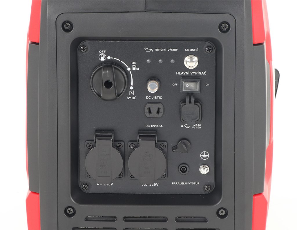 Automatická kontrola hladiny oleje díky olejovému čidlu zajišťuje automatické vypnutí motoru v případě nízké hladiny oleje. Ochrana proti přetížení generátoru i proti nízké hladině oleje je indikována světelnou signalizací.