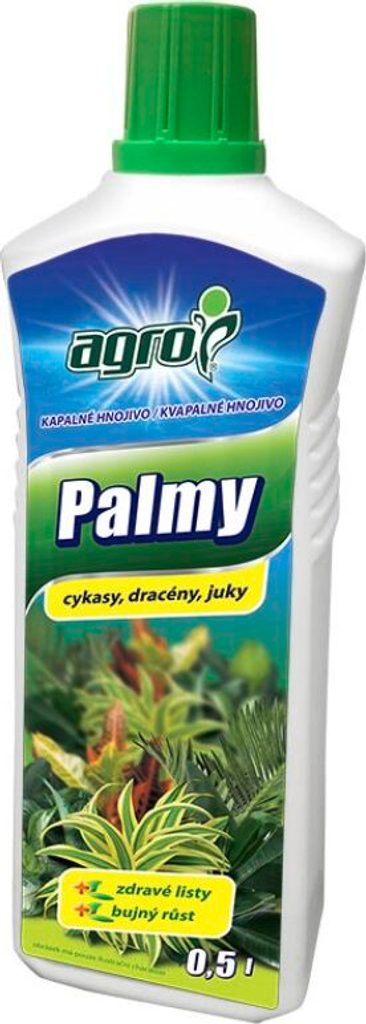 Agro PALMY je vynikající kapalné hnojivo pro palmy a zelené rostliny. Toto kvalitní hnojivo je ideální pro růst pokojových rostlin okrasných listem (palmy, dracény, fíkusy, monstery, diefenbachie apod).