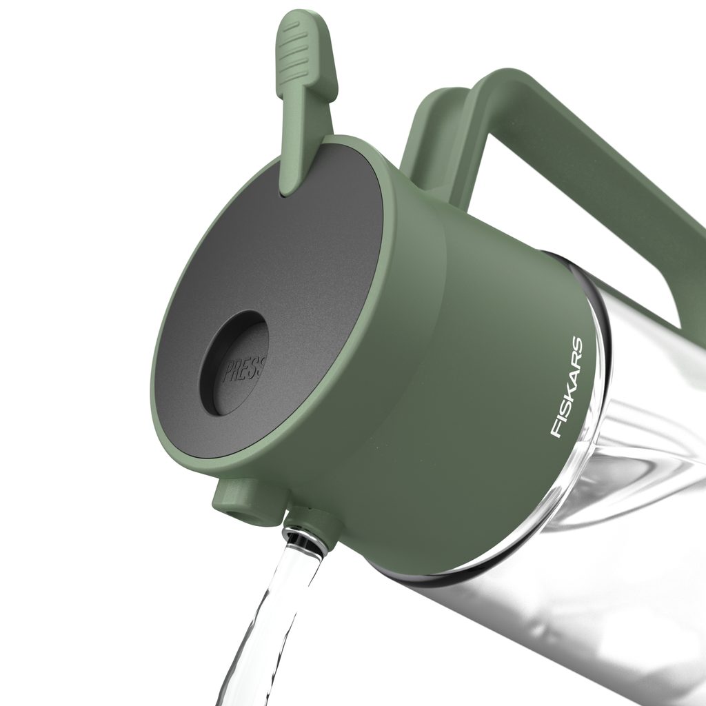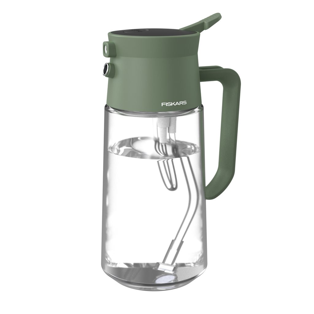 Karafa Fiskars na zalévání a vlhčení nabízí dva způsoby péče o pokojové rostliny – jemné mlžení a přesné zalévání. Díky kompaktnímu objemu 0,5 l je vhodná pro každodenní péči o menší květináče, rostliny na parapetu nebo v kanceláři, kde oceníte kontrolované dávkování vody.