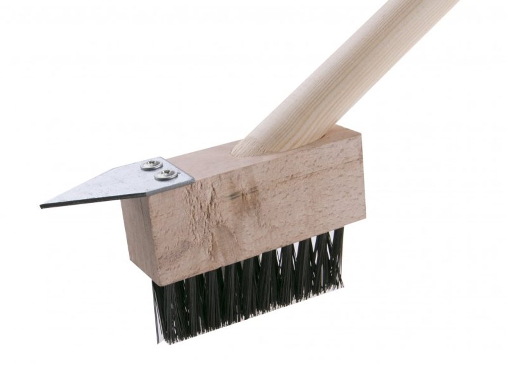 Kartáč na čištění zámkové dlažby s rukojetí. Kartáč na zámkovou dlažbu je velmi účinný při odstraňování mechu a plevele na menších plochách. Kartáč ze smrkového dřeva je osazený kvalitním ocelovým drátem. Délka násady 140 cm.