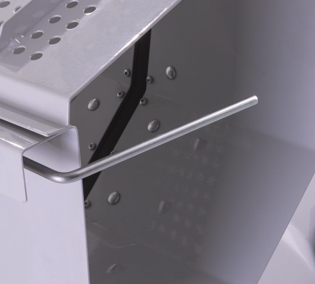 Pružinový systém automaticky vrací kolébku do původní polohy, zatímco speciální tvar a výstupky na kolébce zabraňují protáčení polen a usnadňují řezání kulatiny o průměru až 250 mm.
