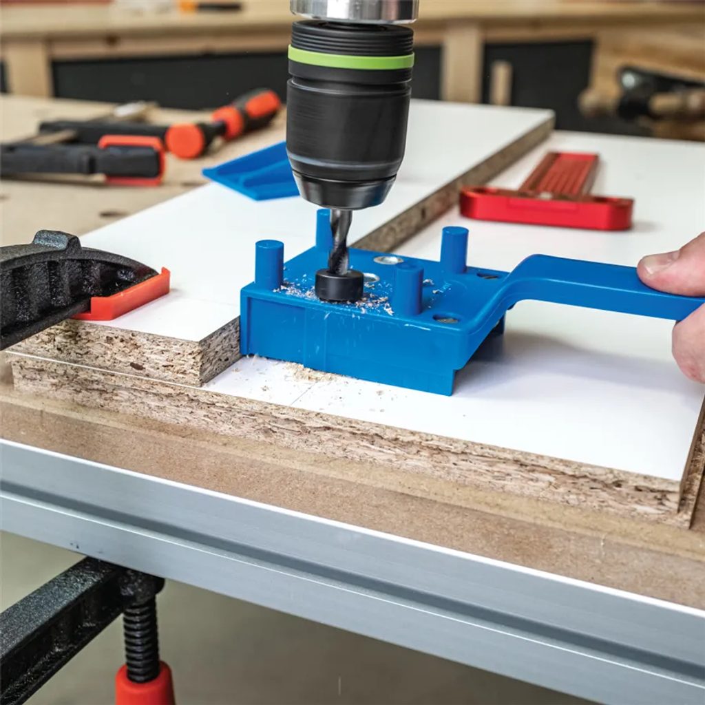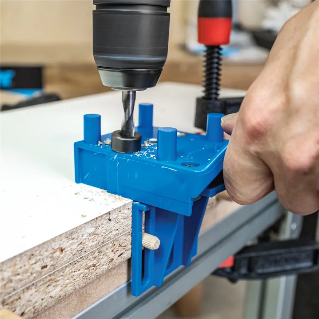 Praktický pomocník pro přesné kolíkové spoje přípravek IGM je ideální volbou pro kutily i domácí dílny. Umožňuje snadné a přesné spojování dílců do tvarů E, L a T pomocí kolíků o průměru 6, 8 nebo 10 mm. Díky centrovacím trnům vždy vystředíte otvor dokonale přesně – i u materiálu o tloušťce až 30 mm.