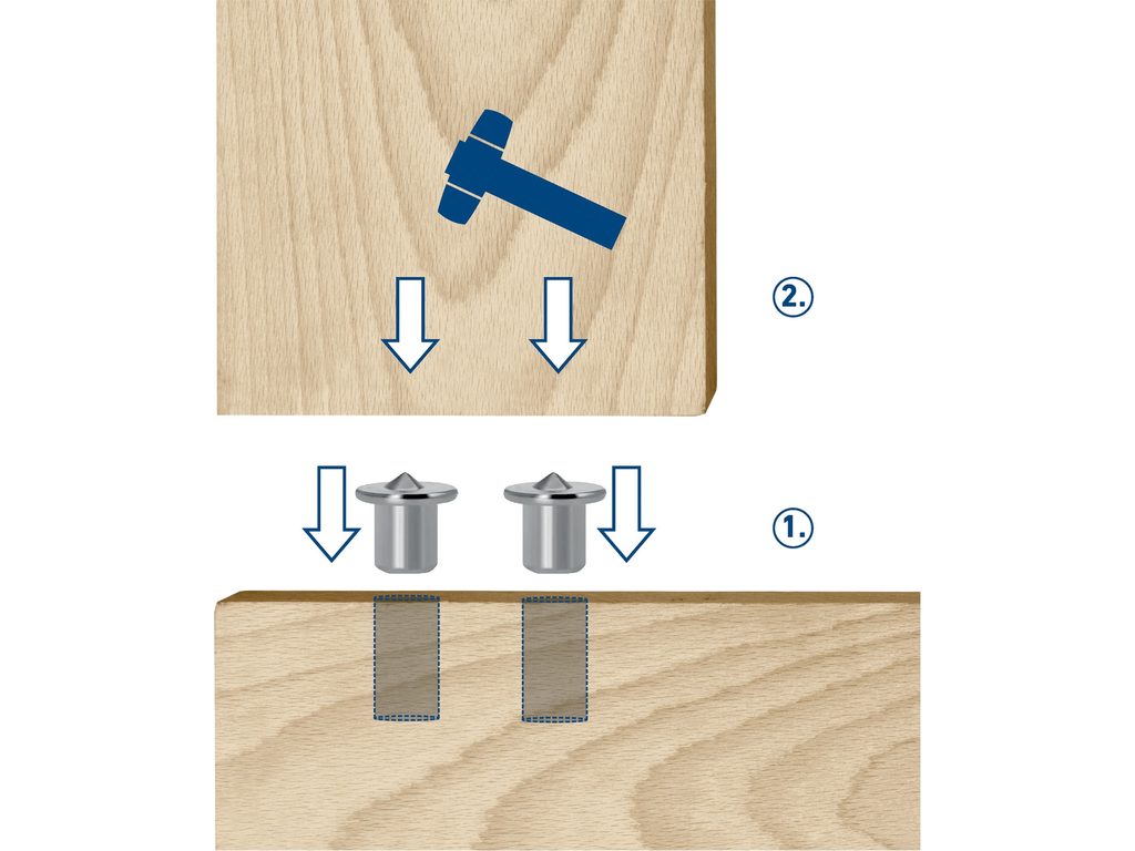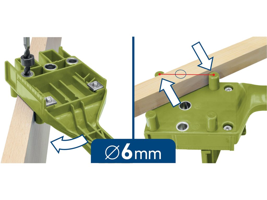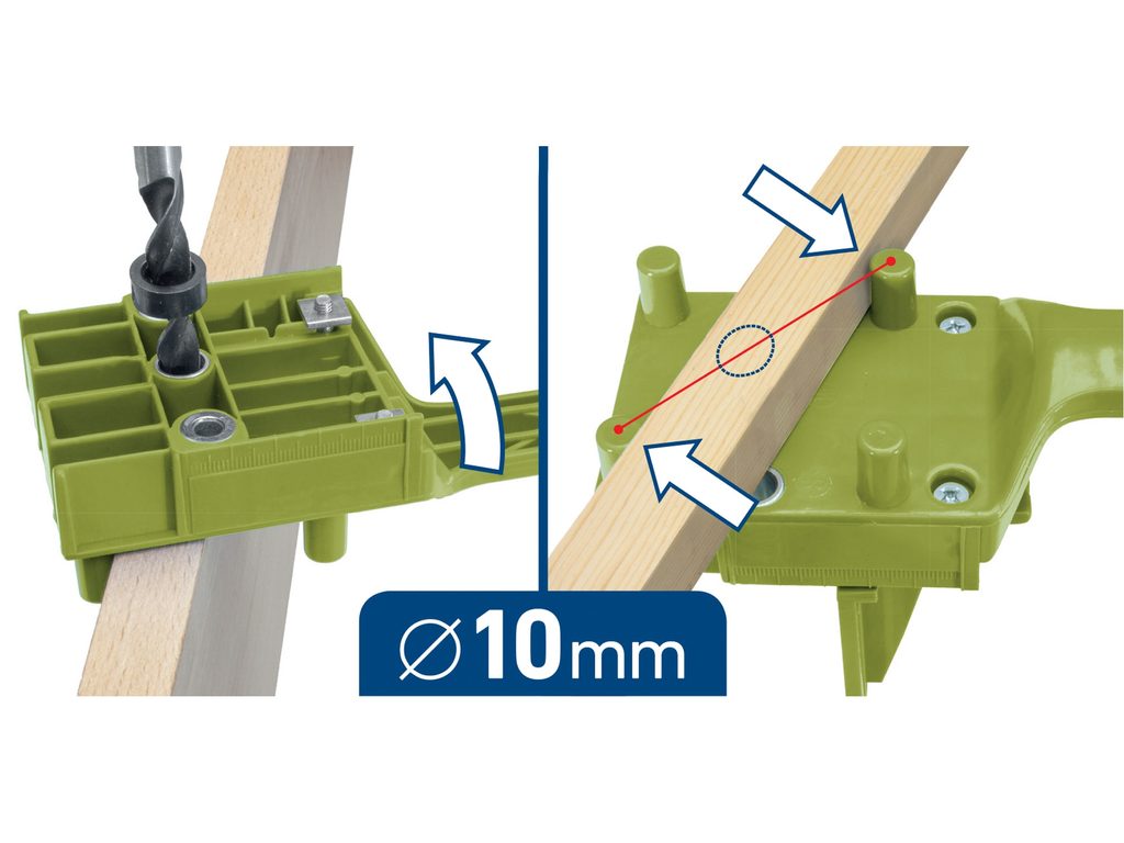 Přípravek umožňuje přesné značení i vrtání otvorů o průměrech 6, 8 a 10 mm. Je vyroben z kvalitního a odolného plastu, zatímco vodicí pouzdra pro vrtáky jsou z pevné oceli, což zaručuje dlouhou životnost a přesnost práce. S tímto přípravkem docílíte profesionálních výsledků bez zbytečné námahy.