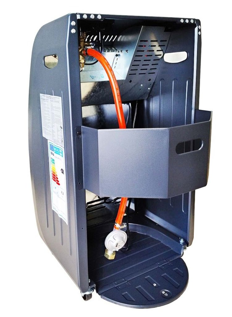 Klíčovým benefitem těchto kamen je efektivní rozvod tepla díky integrovanému elektrickému ventilátoru. S výkonem 1,5/2,8/4,2 kW a možností regulace spotřeby plynu dle potřeby (110/200/305 g/hod) tato kamna poskytují flexibilitu a ekonomickou spotřebu energie. Bezpečnost je zajištěna díky senzorům zhasnutí plamene, převrácení kamen a nedostatku kyslíku, což zaručuje klidné a bezpečné prostředí.