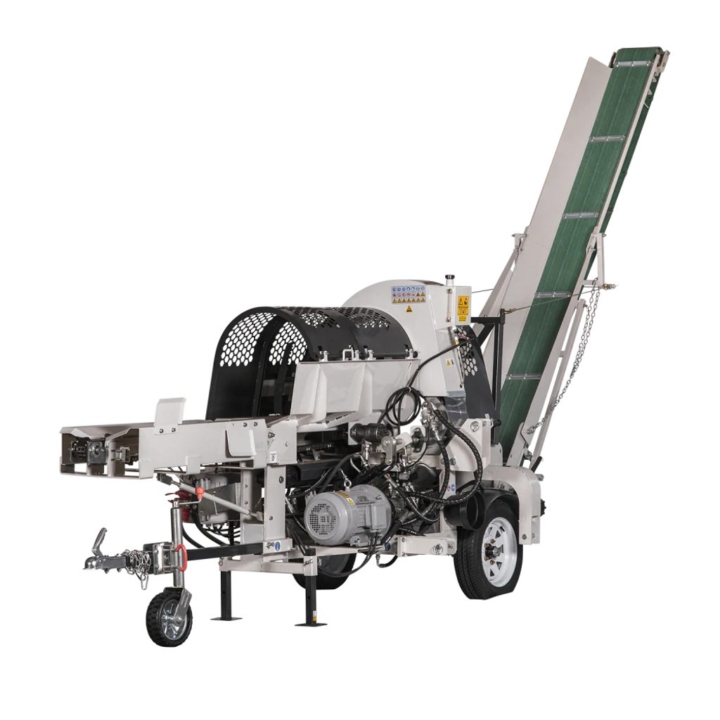 Zařízení je vybaveno důmyslným dopravním systémem. Na vstupu je instalován řetězový dopravník pro snadné podávání materiálu. Zpracované dřevo je pak automaticky odváděno pomocí pásového přepravníku.