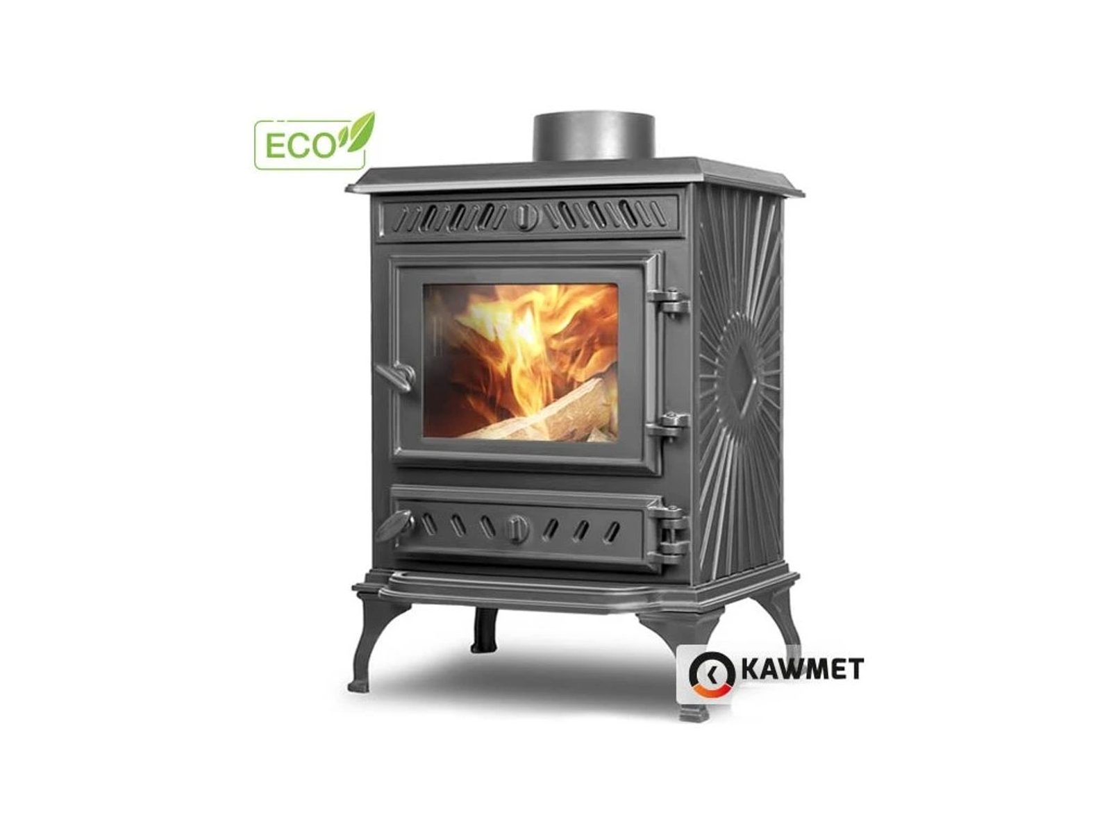 Krbová kamna KAWMET P3 se pyšní jmenovitým výkonem 7,4 kW, což zajišťuje efektivní vytápění prostor až do 74 m² s energetickou účinností 71,6 %. Díky použití kvalitní litiny jsou tato kamna robustní a odolná, což potvrzuje i certifikace CE a splnění norem ECODESIGN 2022. Palivem pro tato kamna je dřevo, s maximální délkou polen 30 cm, přikládání je snadné a pohodlné díky přednímu otevírání.