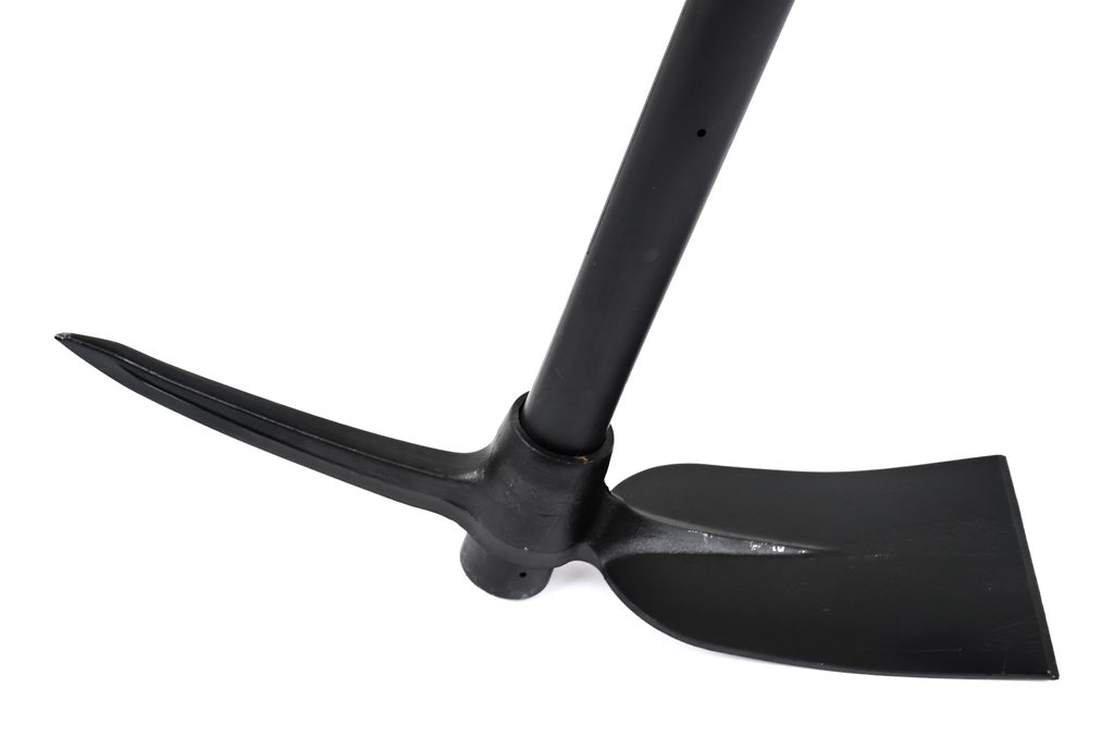 Jedna strana pracovní části zakončená do špičky (určena zejména ke kopání v tvrdé půdě), druhá je zakončena extra širokou pracovní plochou pro velký záběr při odkopávání zeminy nebo přesekávání kořenů.