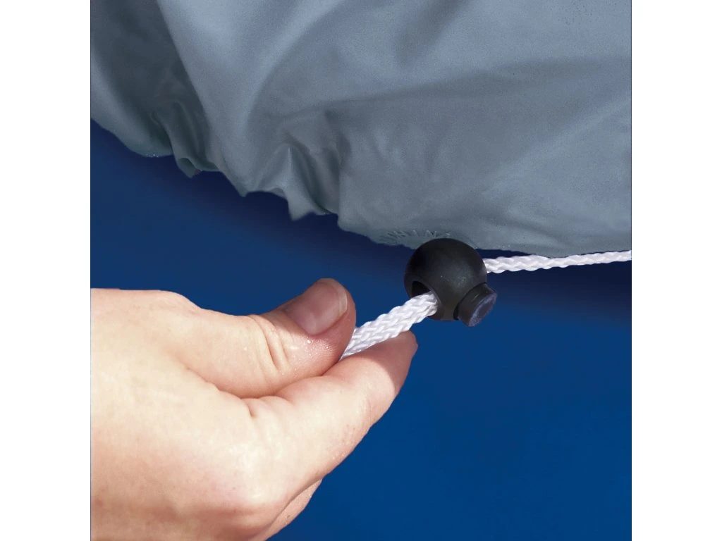 Plachta je vyrobena z odolného materiálu s kvalitním lemováním a stahovací šňůrou, takže drží pevně na místě i při větru a nepropadá se. Oproti běžným plachtám na trhu vydrží déle, zachovává tvar a stabilitu a je připravena každý den chránit váš bazén.