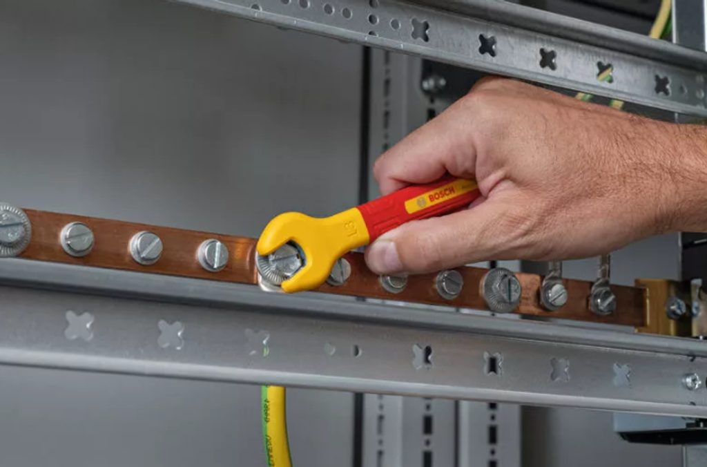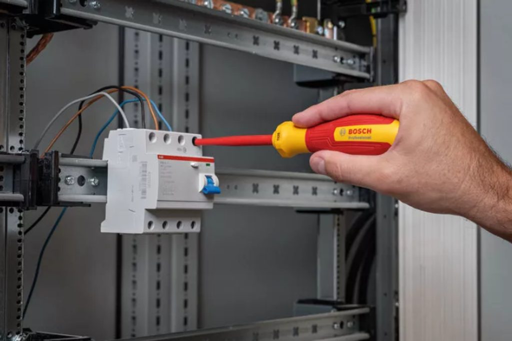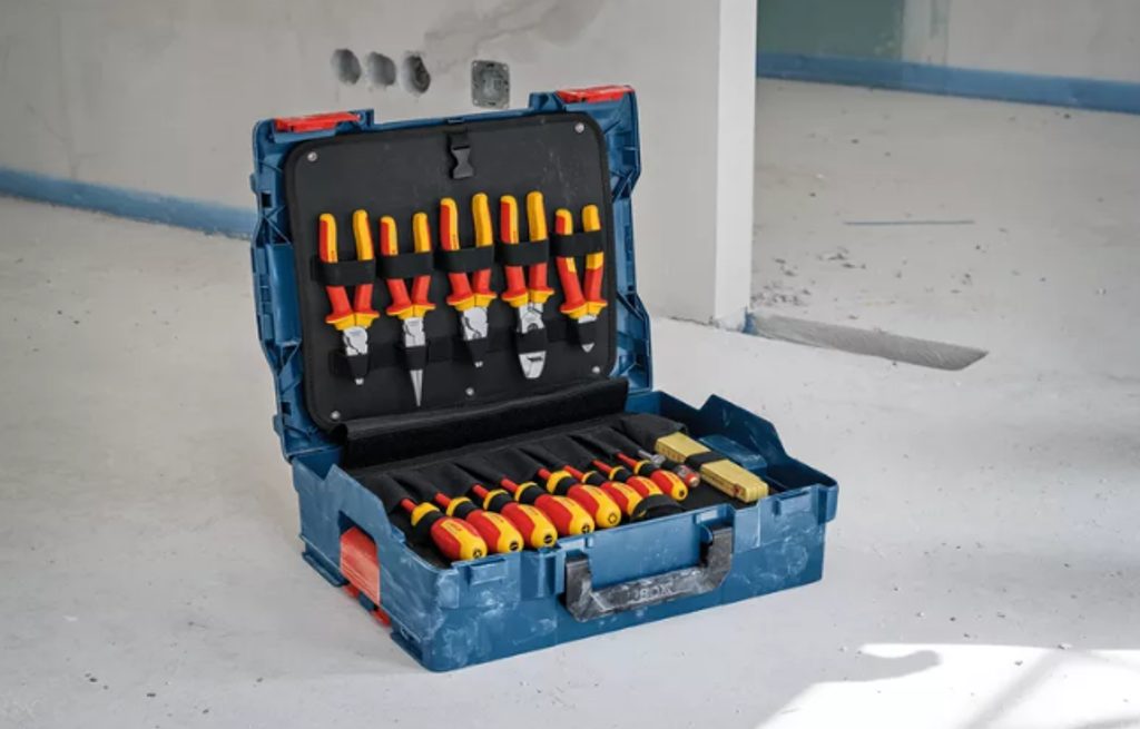 Kufřík pro elektrikáře Bosch je mimořádně všestranná a praktická 37dílná sada ručního nářadí obsahuje vše, co potřebujete pro práci s elektrickými rozvody a zařízeními. Sada zahrnuje 21 kusů ručního nářadí VDE, mezi nimiž najdete 8 šroubováků, jednopólovou fázovou zkoušečku, 4 otevřené klíče, 7 kleští a 1 nůž. Veškeré nářadí VDE je certifikováno podle normy DIN EN/IEC 60900, což zaručuje maximální bezpečnost a spolehlivost. Fázová zkoušečka navíc nese certifikaci podle normy DIN VDE 0680-6.