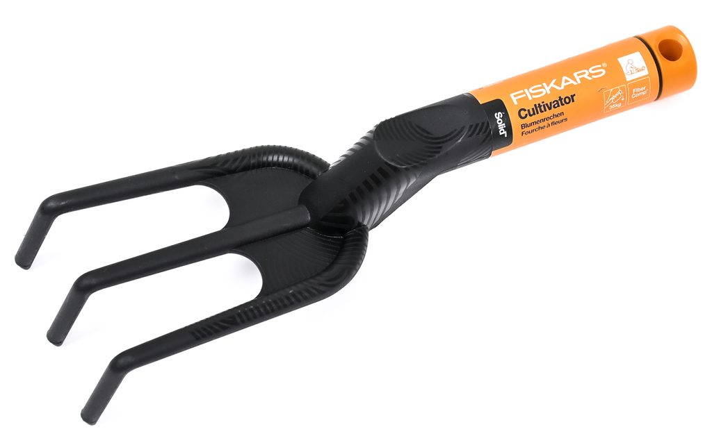 Kultivátor Fiskars Solid 1001600 je vyroben z pevného polyamidu vyztuženého skelnými vlákny, což zaručuje jeho vysokou odolnost vůči opotřebení, ohnutí i extrémním teplotám v rozmezí -40 °C až +150 °C.
