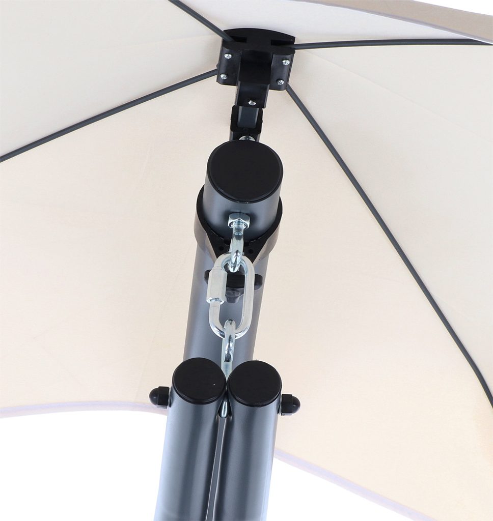 Ocelová masivní konstrukce je povrchově dokončena černou komaxitovou barvou. Základna na čtyřech nohách se postará o stabilitu a Vaše bezpečí při dlouhých chvílích na lehátku. Příjemný stín na čtení vytvoří šestiramenný slunečník.