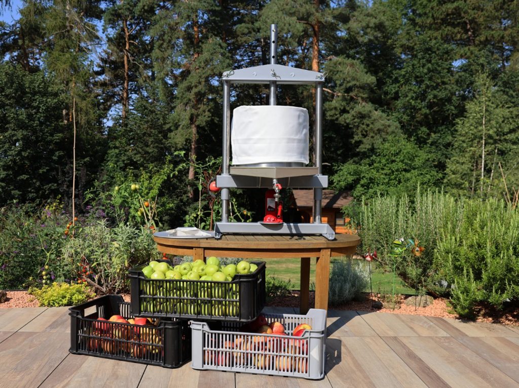 Lis je vyroben z potravinářské nerezové oceli a kvalitní oceli, což zaručuje dlouhou životnost a odolnost vůči ovocným kyselinám. Nerezová konstrukce také usnadňuje údržbu. Koš lisu o objemu 50 litrů odpovídá obsahu tří nádob drtiče Fruit SHARK, což z něj činí ideálního pomocníka pro zpracování nadrcených jablek, hrušek nebo hroznového vína. Přítlačné desky o síle 6 mm a koš z nerezi o síle 3 mm jsou navrženy pro přímý styk s potravinami.