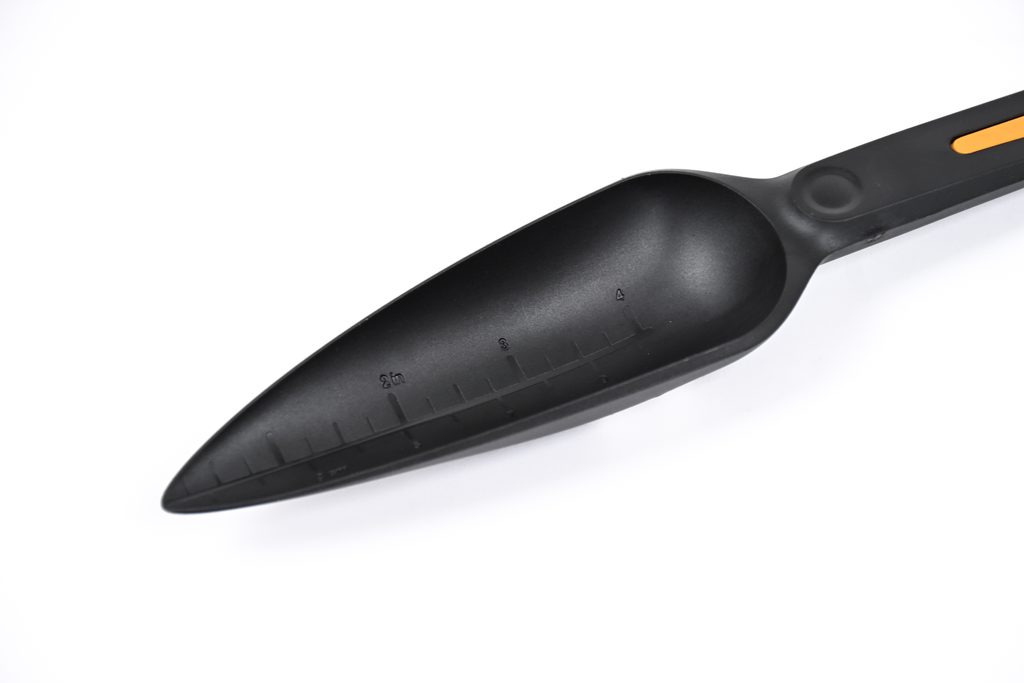 Dobře čitelné měřítko s anglickou a metrickou stupnicí je vytlačené do povrchu lopatky a používáním se neporuší ani nezmizí. Vyrobeno z lehkého, korozivzdorného materiálu FiberComp s vynikající odolností.