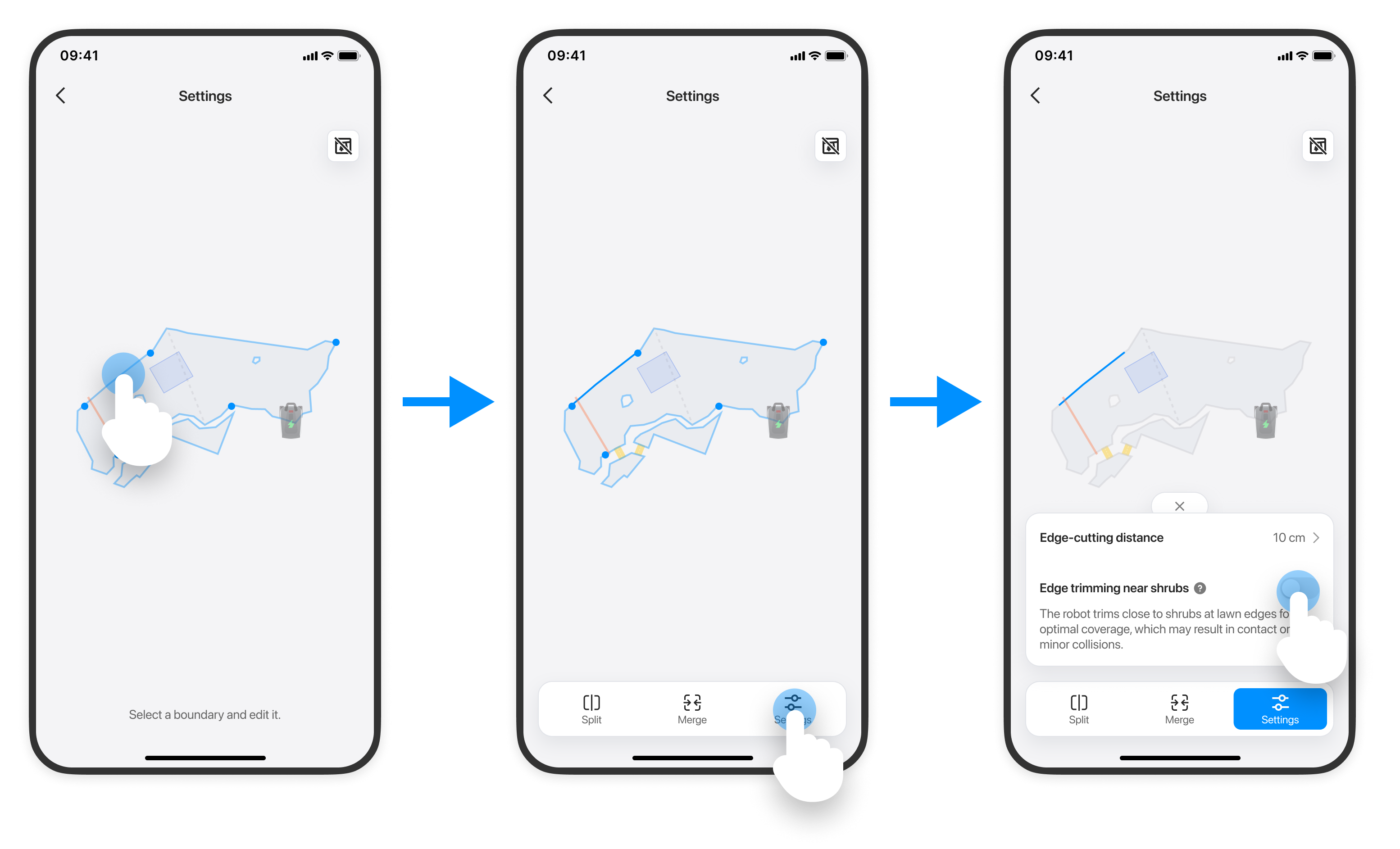 Možnost rozdělit hranici trávníku na více částí a nastavit je individuálně.