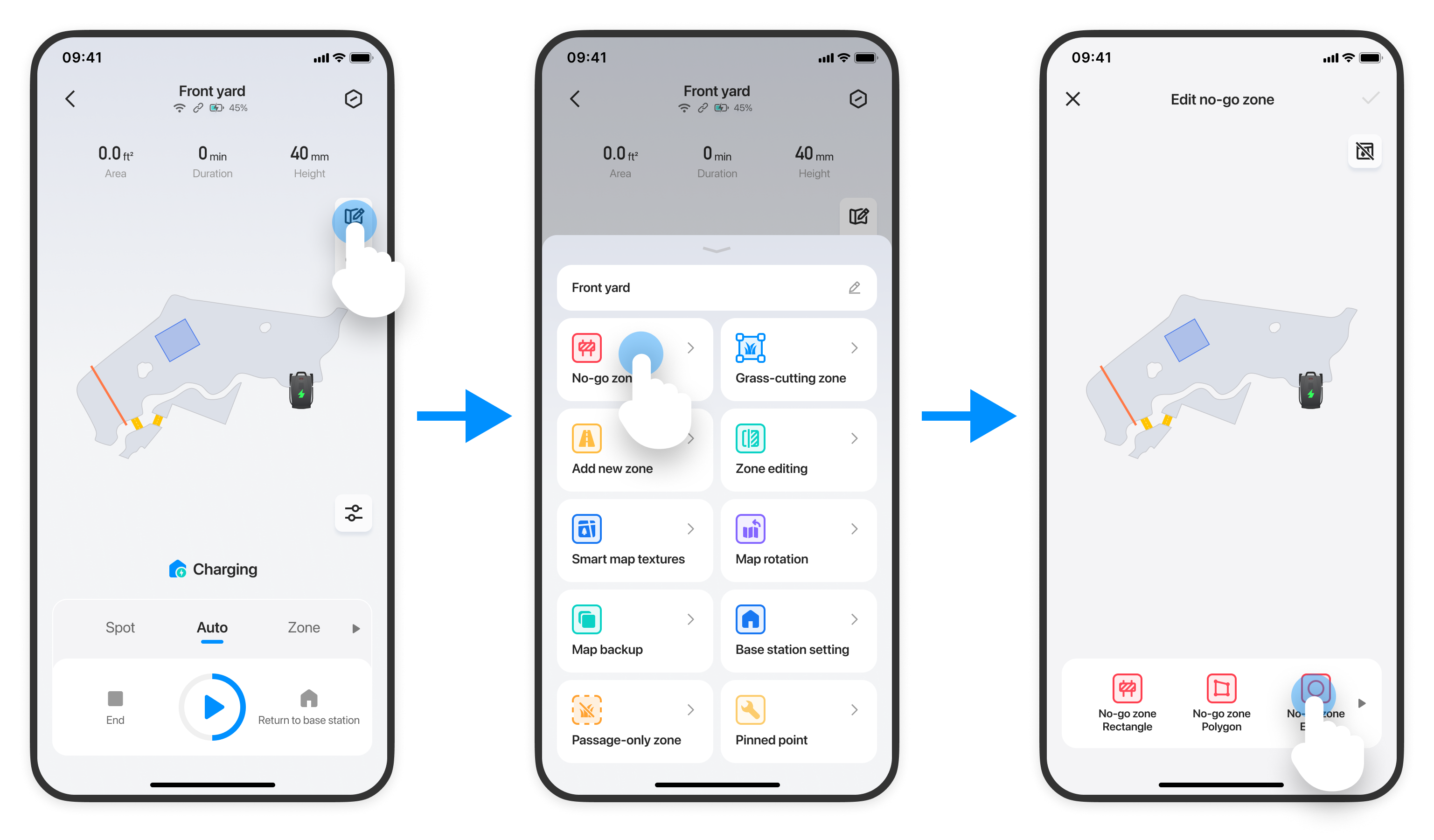 Při změně trávníku se mapa automaticky aktualizuje během režimu Auto Mowing.