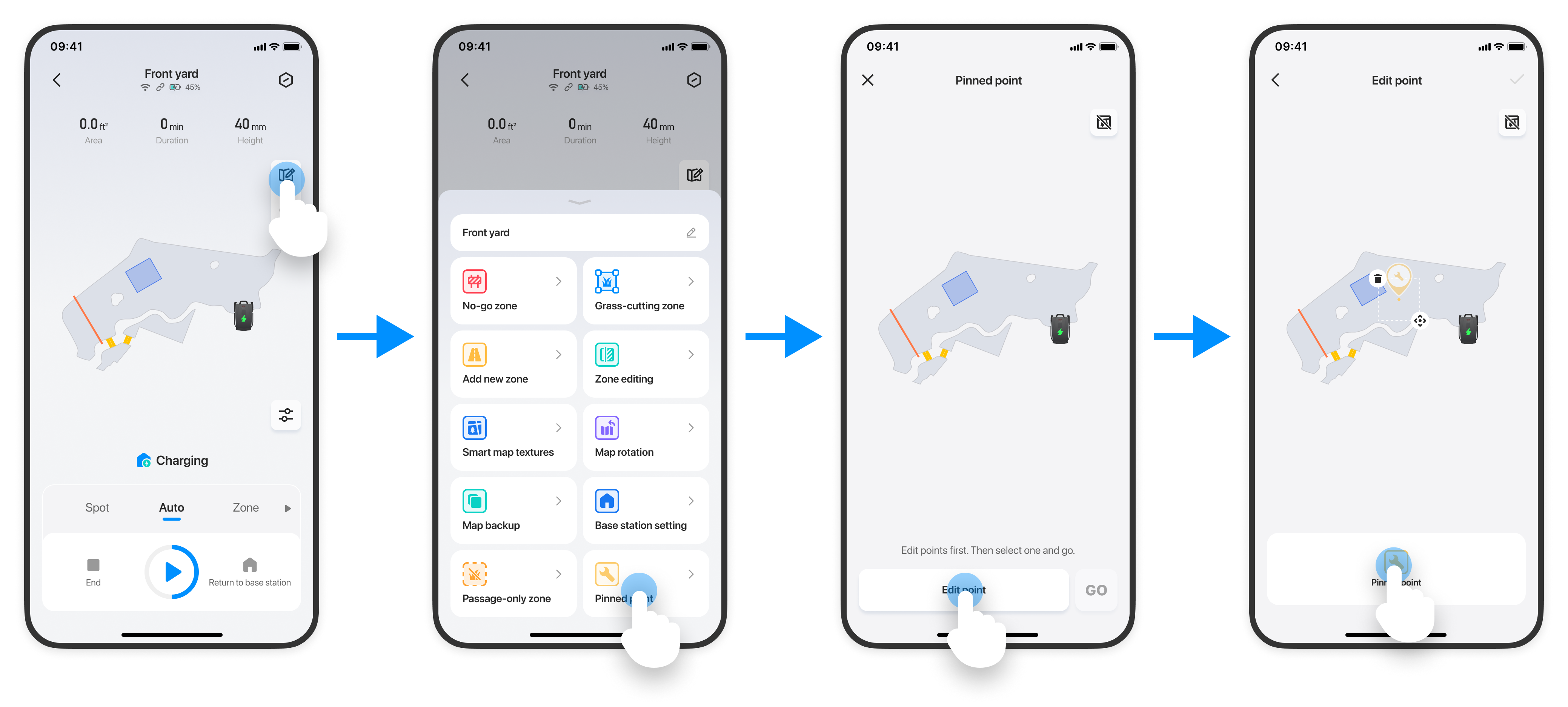 Možnost připnout „summon“ body a robot lze poté zavolat přesně na dané místo, např. pro čištění nebo údržbu.