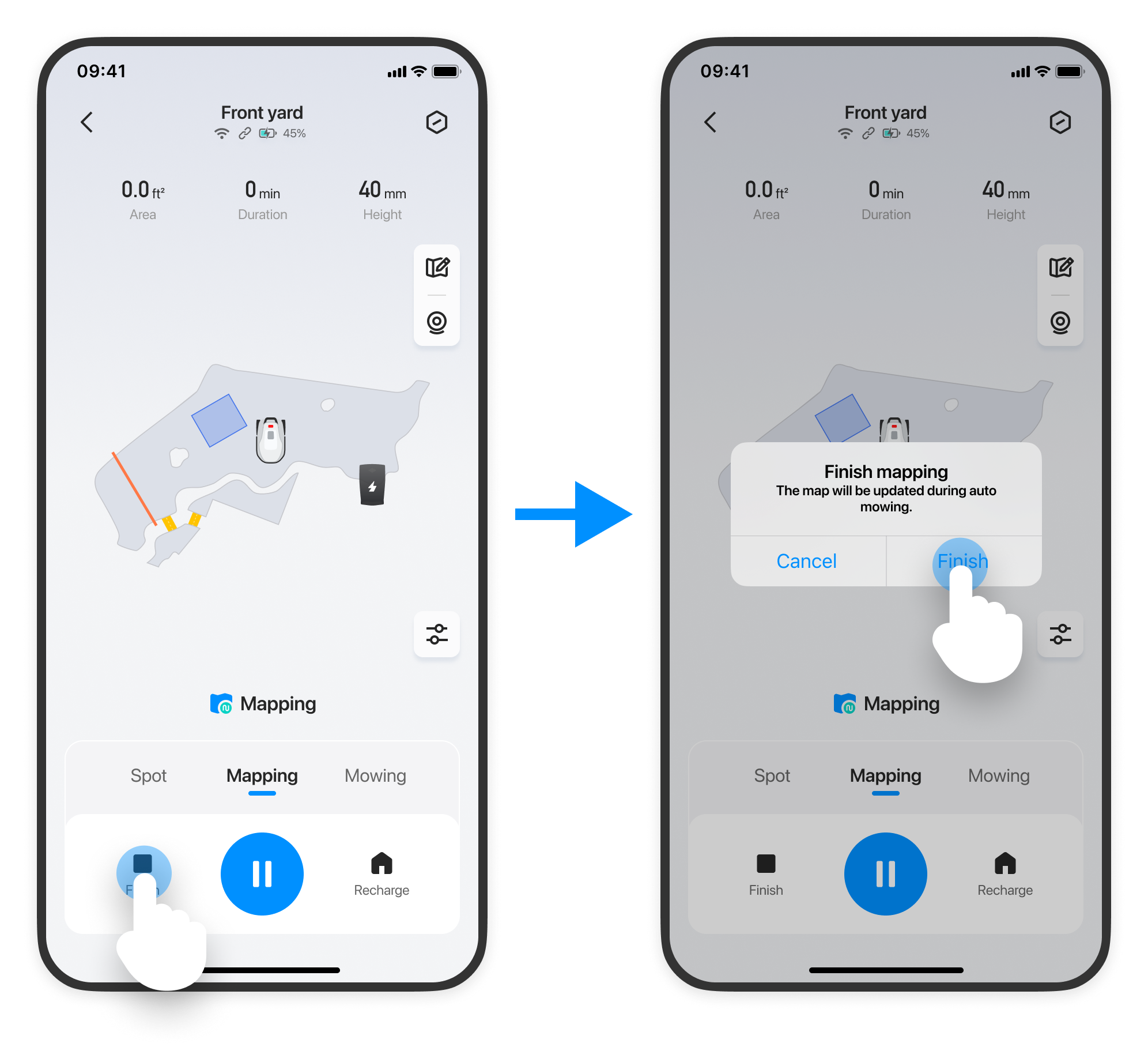Jakmile jste s mapou spokojeni, můžete ji ručně dokončit tlačítkem „Finish“ v aplikaci.