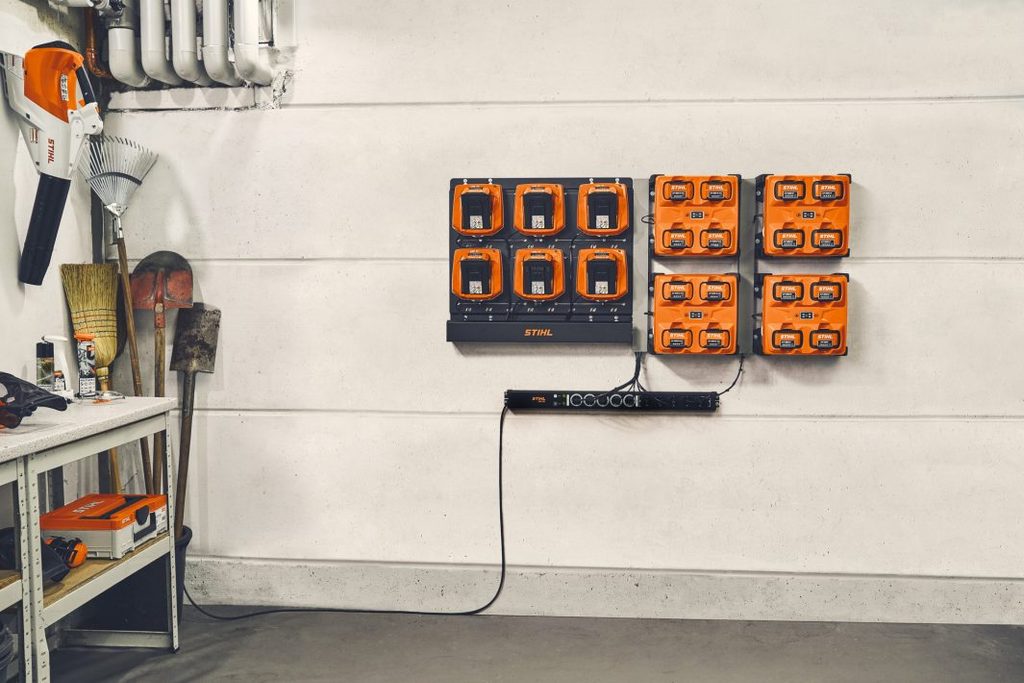 Management nabíjení STIHL CM 10 je šikovné řešení pro efektivní nabíjení, ideální pro profesionály v oblastech jako zahradnictví, krajinářství, komunální služby nebo lesnictví. Tento systém umožňuje propojit až 10 nabíječek a nabíjet až 40 akumulátorů na jedné pojistce, ať už jste v dílně nebo na cestách.