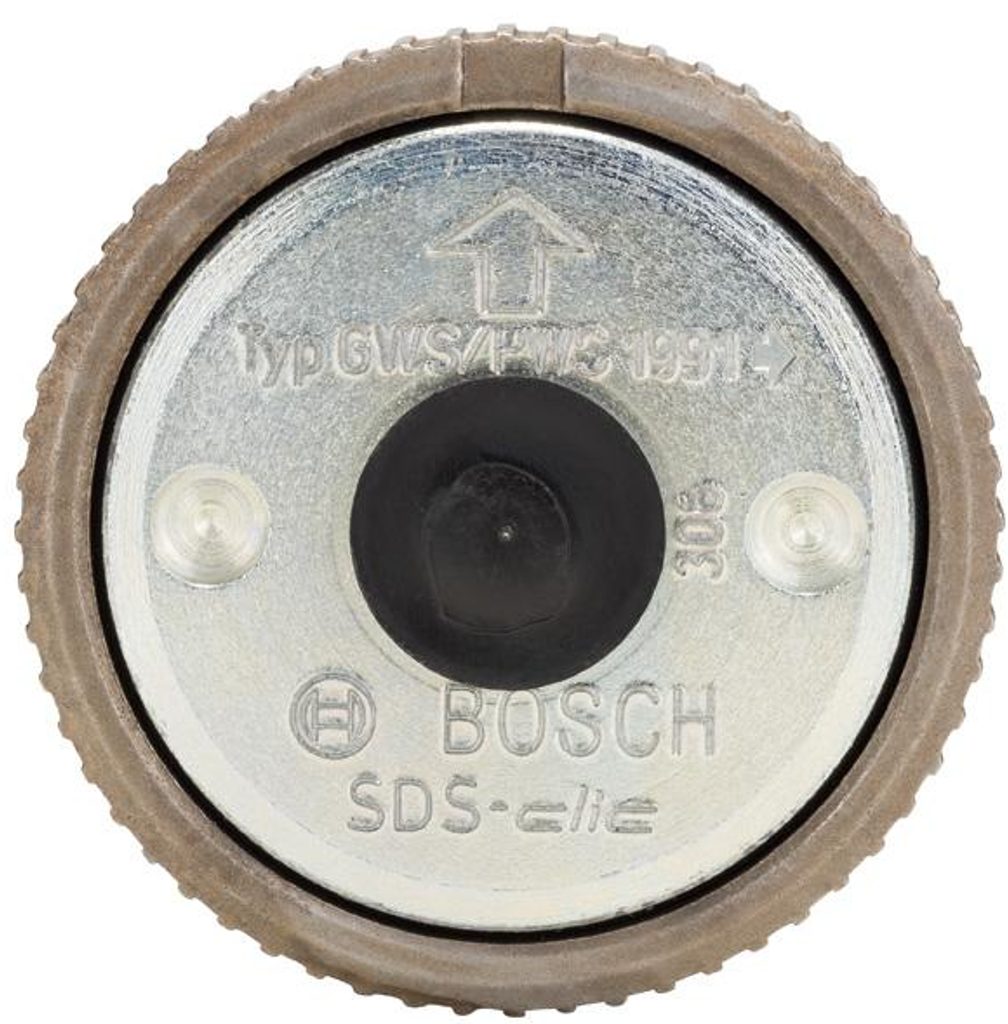 Matice rychloupínací Bosch pro látkový kotouč o průměru 115-150 mm praktickým a užitečným příslušenstvím, které usnadňuje rychlé a bezpečné upnutí různých typů brusných kotoučů, čímž vám umožňuje efektivní a přesnou práci s úhlovou bruskou.