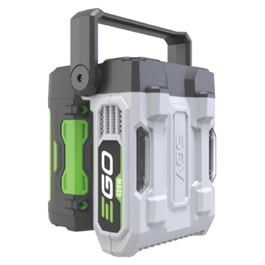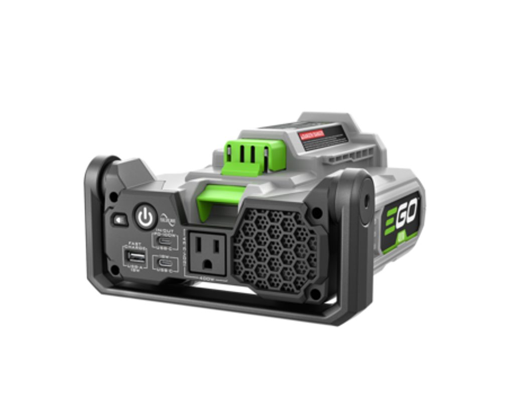 Měnič stačí nasadit na libovolnou baterii EGO a získáte přenosný zdroj el. proudu ~ 230V/50Hz pro napájení spotřebičů běžně napájených z elektrické sítě.