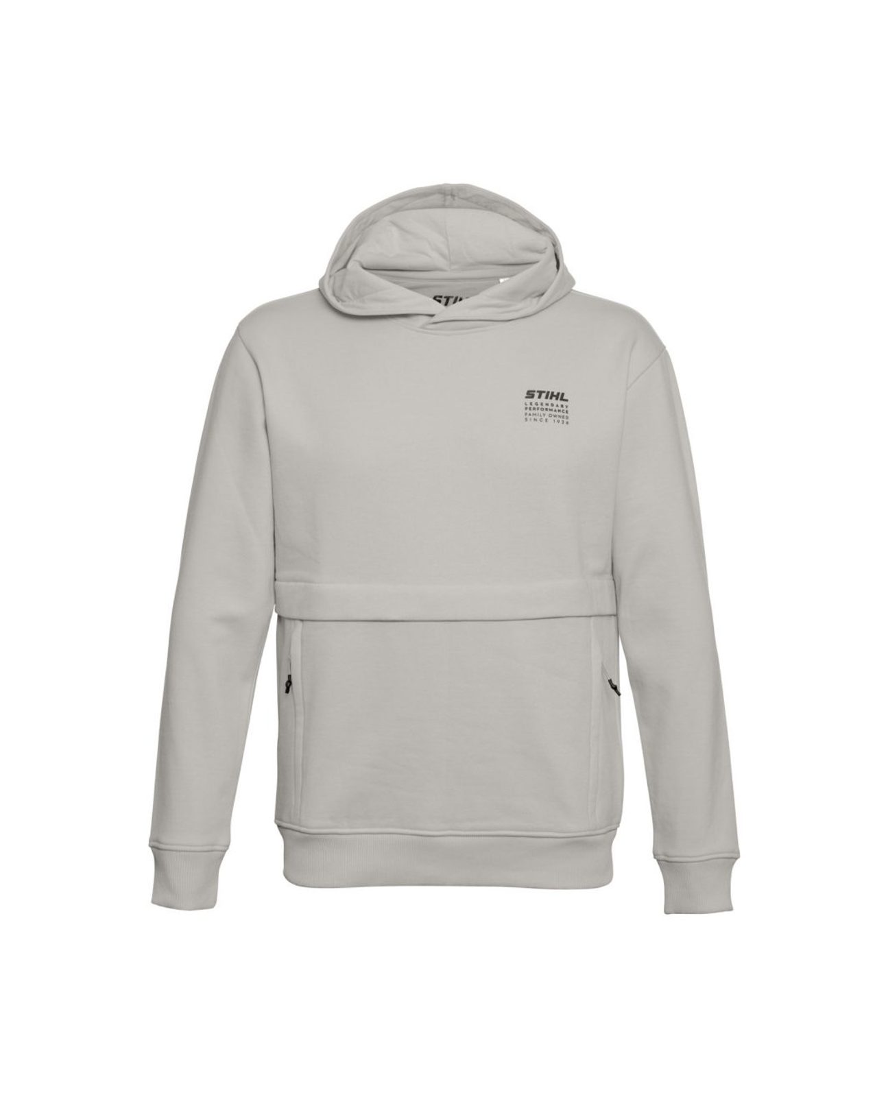 Mikina STIHL LEGENDARY je měkká a lehce oversized mikina je navržena s ohledem na pohodlí a praktičnost. Je vybavena velkou kapsou na zip, kde můžete bezpečně uložit telefon, klíče nebo jiné drobnosti, aniž byste se museli obávat jejich vypadnutí. Na levé straně hrudi je decentně vytištěno malé logo STIHL v černé barvě a nápis "STIHL LEGENDARY PERFORMANCE", který podtrhuje její jedinečnost a spojení s osvědčenou kvalitou značky STIHL.