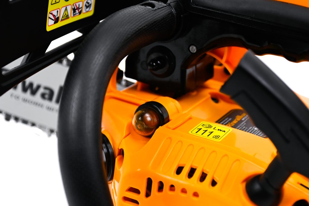 Spolehlivý a výkonný motor řetězové pily Riwall osazený moderním karburátorem pro klidný běh a práci v jakémkoliv úhlu.
