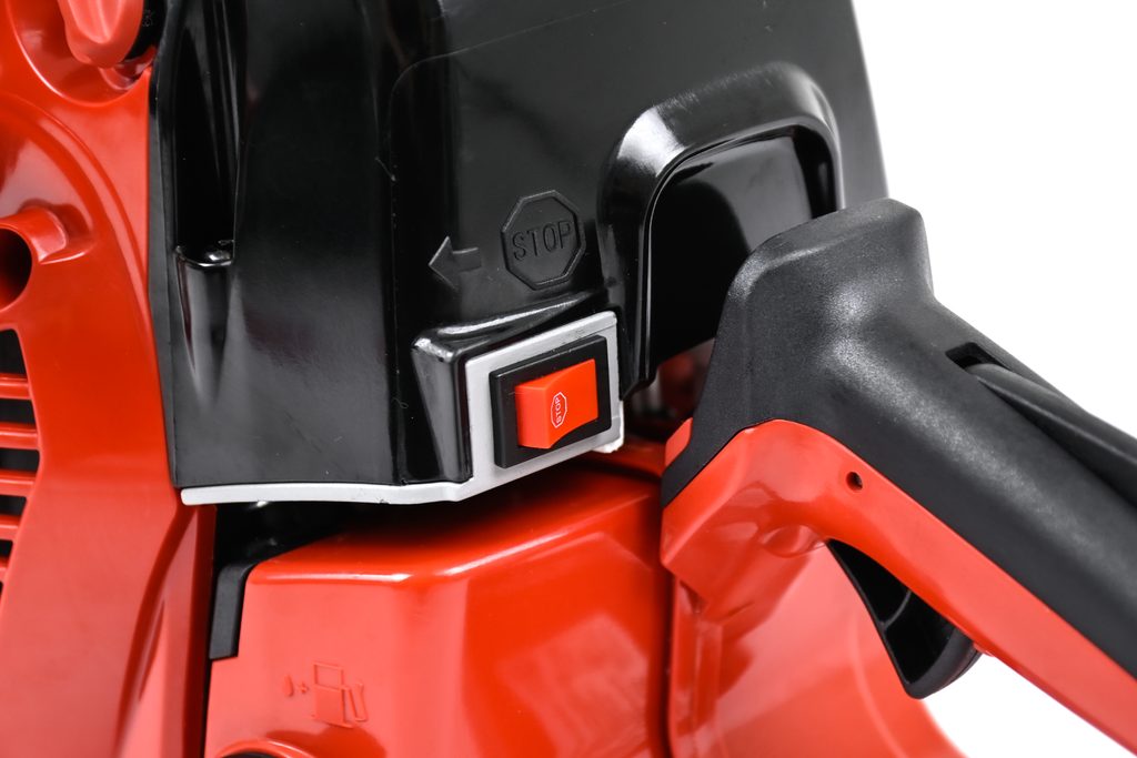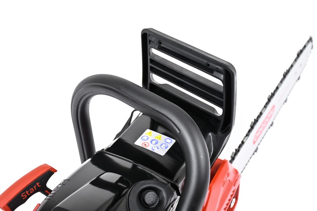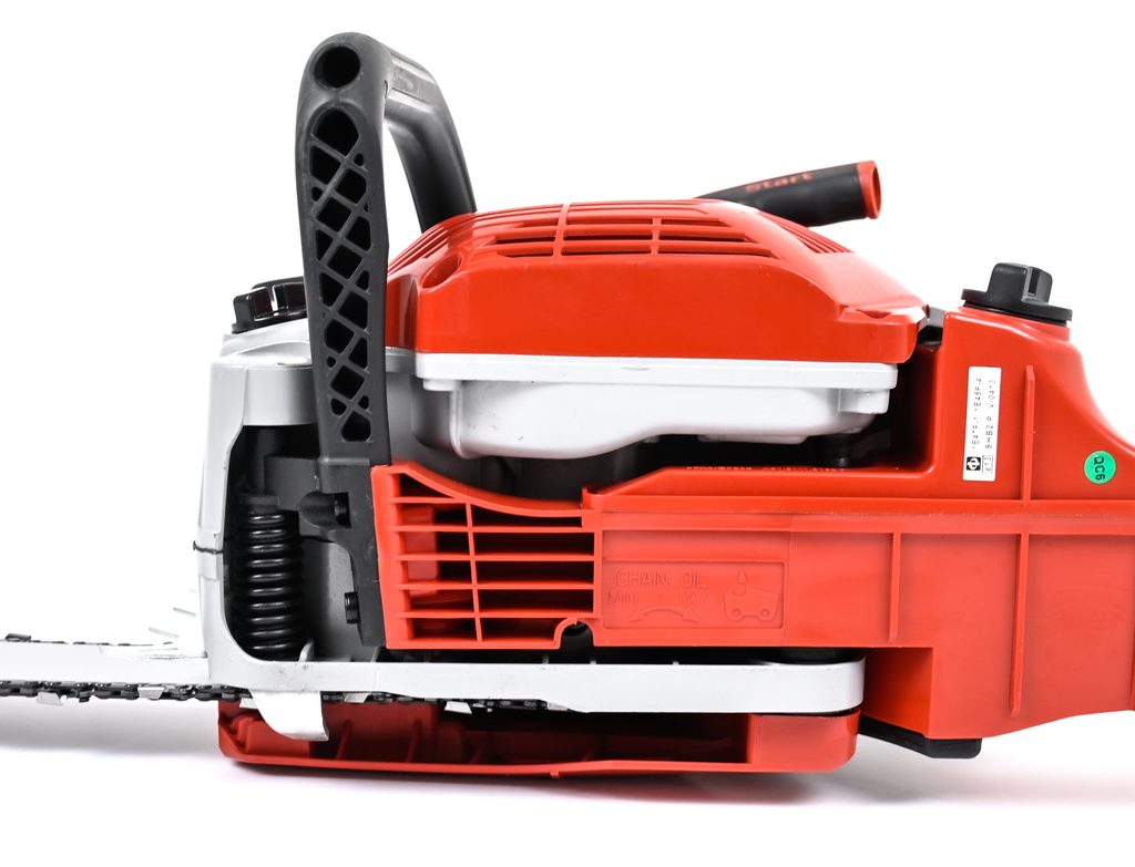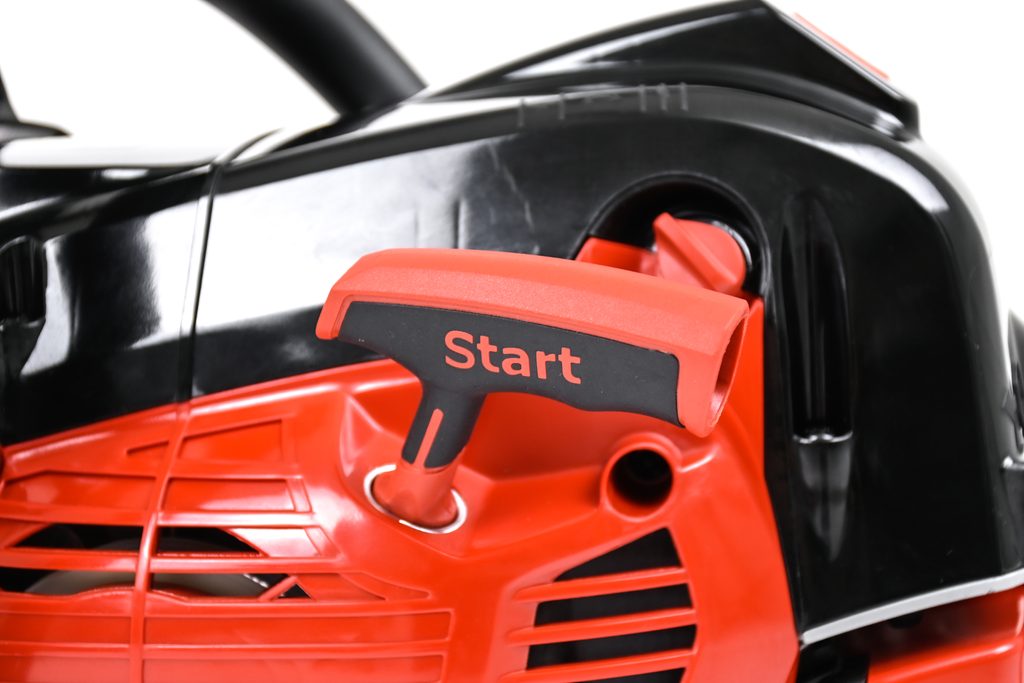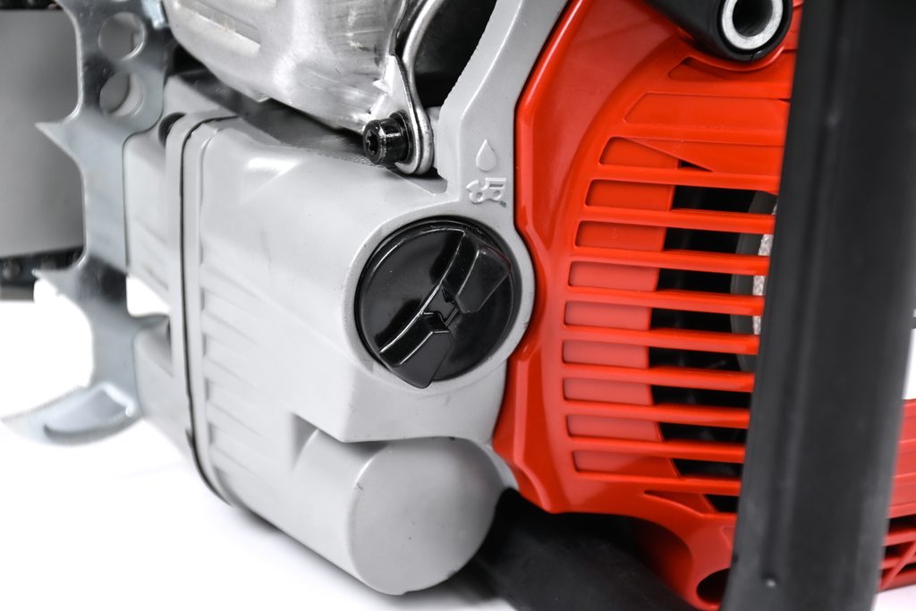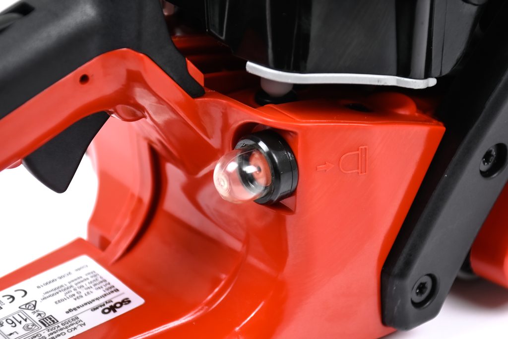 Postranní napínání řetězu upevněné pomocí převlečných matic usnadňuje údržbu a urychluje ideální nastavení řetězové pily. Elektronický startovací systém pomocí tlačítka a za pomocí primeru zajišťují rychlý a bezpečný start.