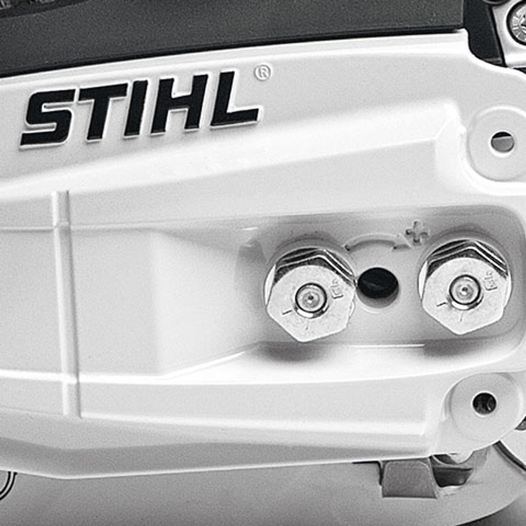 Dekompresní ventil při startování uvolňuje část stlačené směsi z válce, což snižuje potřebnou sílu na startovacím lanku a chrání startovací systém. ElastoStart rukojeť s tlumícím prvkem plynule akumuluje a uvolňuje sílu, čímž zajišťuje hladké startování bez trhavých pohybů. Napínací šroub ovládaný ze strany krytu řetězky snižuje riziko kontaktu s ostrým řetězem.