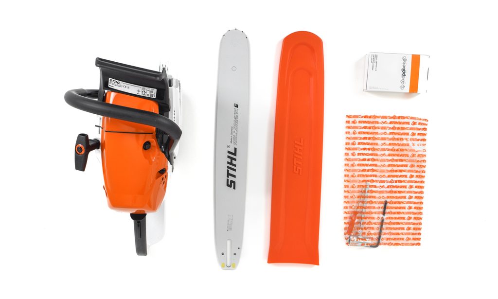 | Funkce | Antivibrační systém , Zubová opěrka , Řetězová brzda , Automatické mazání lišty a řetězu , STIHL Ematic-System , STIHL ElastoStart , Kompenzátor |
