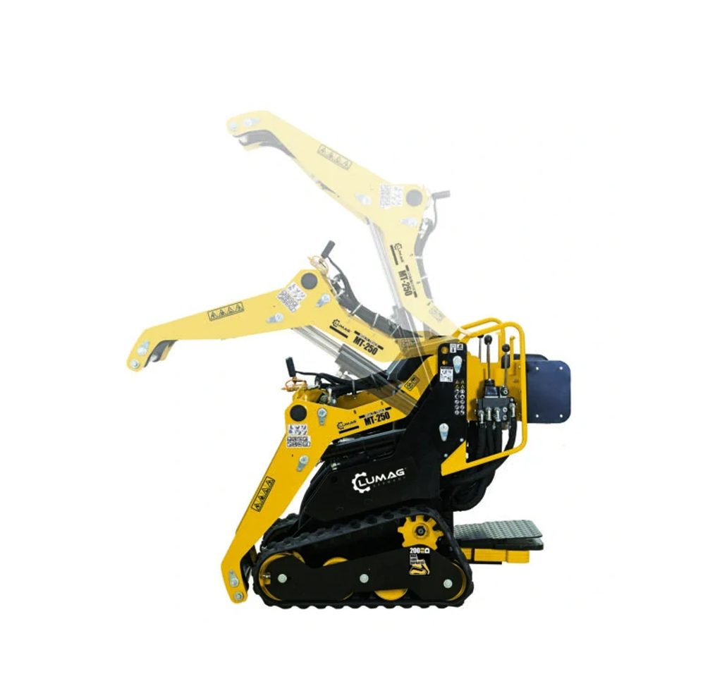 Univerzální nakladač Multi-truck Lumag MT-250 je výkonný stroj s pásovým podvozkem a smykovým řízením, který je určen pro všestranné využití. Díky svým kompaktním rozměrům a pásovému podvozku zajišťuje výbornou průchodnost i v náročném a těžko dostupném terénu. Spolehlivý benzínový motor TRIDENT o výkonu 6,3 kW umožňuje efektivní zvládnutí i těch nejnáročnějších úkolů.
