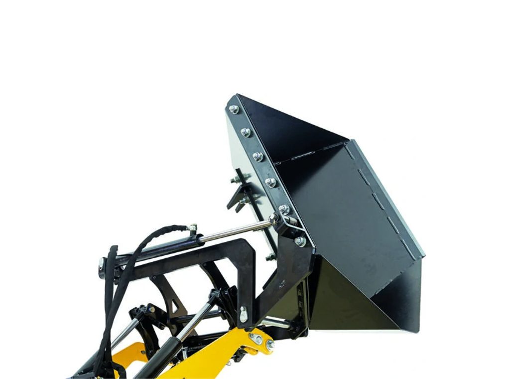 Stroj je již vybaven nakládací lžící o objemu 80 litrů, což z něj dělá ideální řešení pro efektivní manipulaci s materiály.