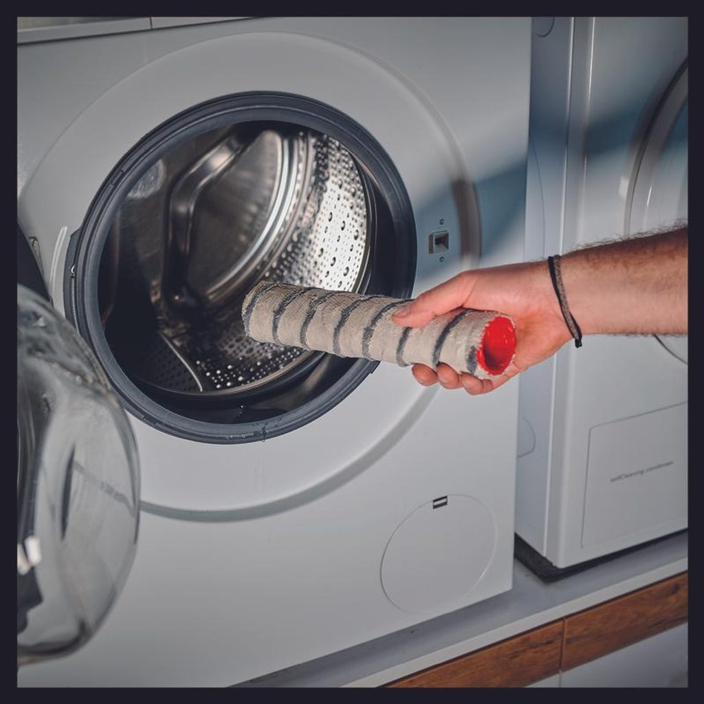 Odolný kartáčový váleček lze pohodlně vyprat v pračce při maximální teplotě 60 °C a nízkých otáčkách. Jeho vyjmutí z akumulátorového čističe tvrdých podlah nevyžaduje žádné nářadí, a jeho zpětná instalace je otázkou několika jednoduchých kroků. S pracovní šířkou 29 cm zajišťuje rychlé a efektivní čištění větších místností a rozsáhlých ploch.