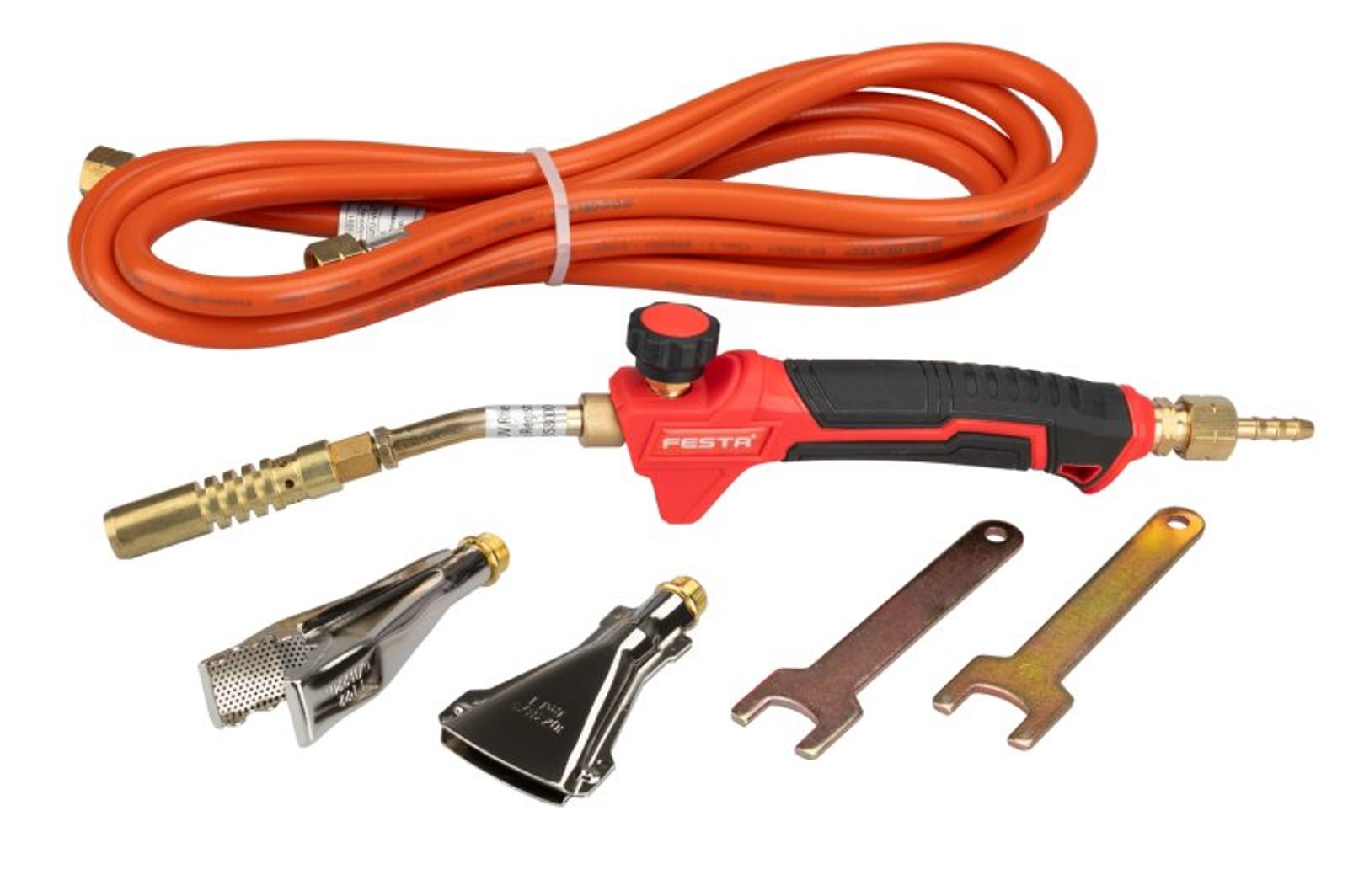 Nahřívací hořák FESTA 2 kW 69918 je je všestranným pomocníkem pro různé aplikace. Tato sada obsahuje 3 m dlouhou hadici s certifikací, zajišťující bezpečné a efektivní používání.