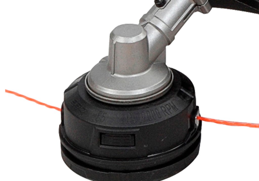Nástavec je vybaven poloautomatickou strunovou hlavou, která zajišťuje optimální délku žací struny. Pokud se struna zkrátí opotřebením, stačí během rotace hlavou klepnout o zem, a odstředivou silou se struna automaticky odvine a prodlouží až na maximální délku 380 mm. Poklepy můžete opakovat, dokud nedosáhnete požadované délky struny, a při příliš velkém povytažení se struna automaticky zkrátí.