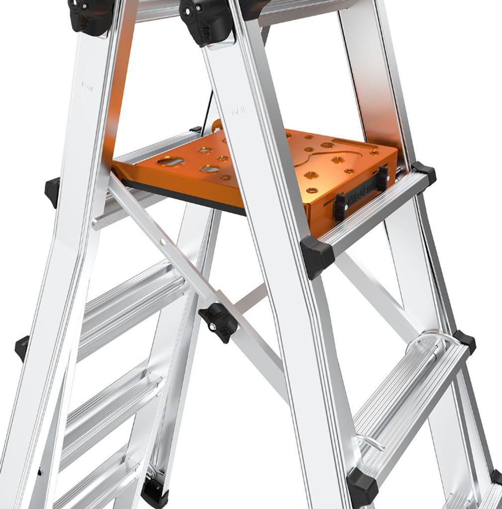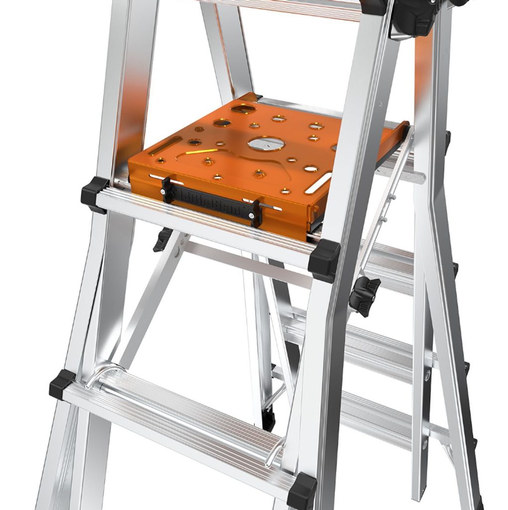 Nastavitelná pracovní plošina LittleGiant slouží nejen jako komfortní plocha pro stání, ale také jako praktická police na nástroje či materiál. Robustní konstrukce umožňuje bezpečné zatížení až 136 kg, takže se nemusíte bát ani při náročnějších úkolech. Díky univerzálnímu provedení je plošina kompatibilní s většinou víceúčelových žebříků této značky, což výrazně zvyšuje její využitelnost v dílně, na stavbě i při domácích úpravách.