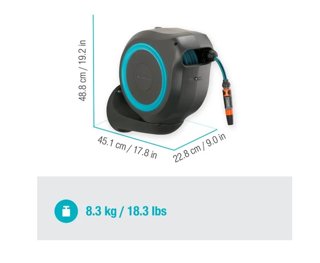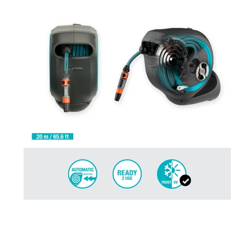 Box je vybaven otočným držákem o 180°, takže se pohodlně dostanete do každého kouta zahrady. S 20-ti metrovou hadicí máte dostatečný dosah i pro větší pozemky. Krátké uzamykací body zajistí, že hadice zůstane vždy přesně tam, kde ji potřebujete, a plynulé navíjení s technologií RollControl chrání hadici i okolí před nechtěným poškozením.