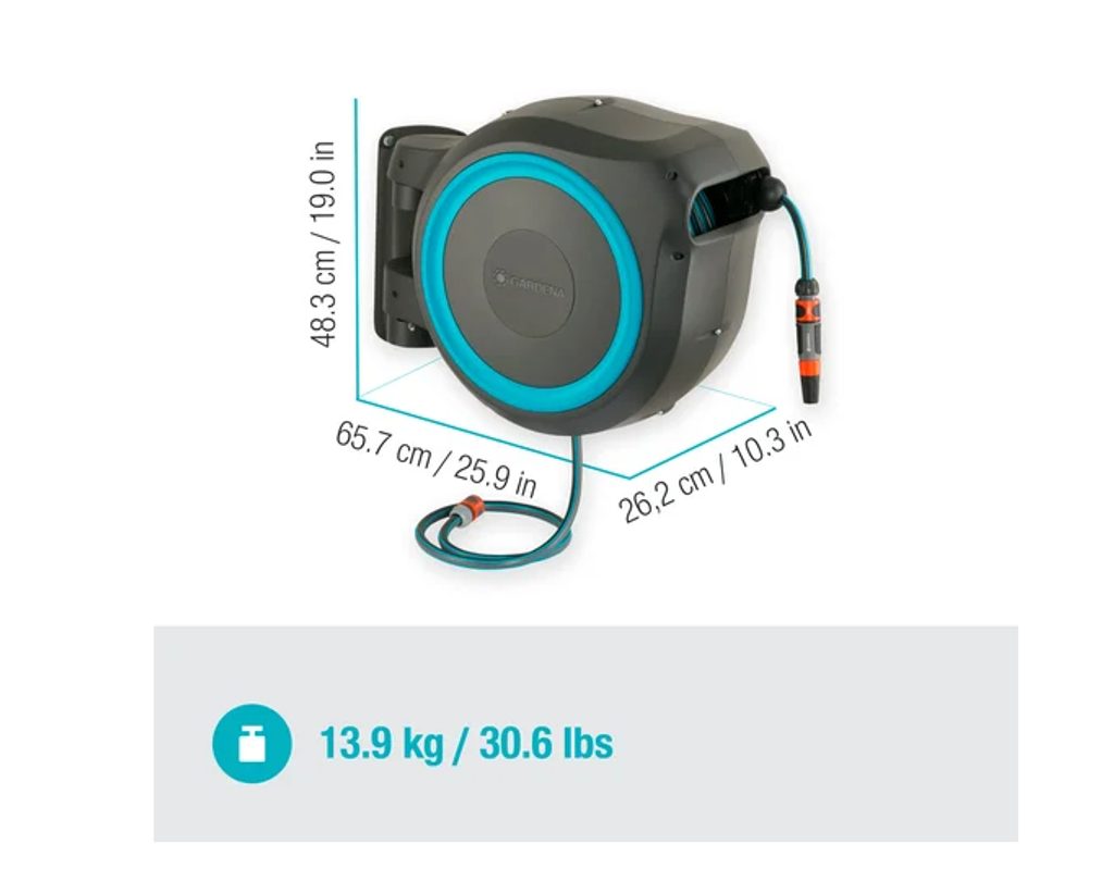 Zavlažování vaší velké zahrady nikdy nebylo tak pohodlné a flexibilní. Díky boxu otočnému o 180° a 30 metrů dlouhé zahradní hadici je při zavlažování zajištěna maximální volnost pohybu. V případě použití jednoduše vytáhnete zahradní hadici na požadovanou délku a začnete zalévat. Jakmile zastavíte, extra krátké uzamykací body se aktivují a zahradní hadici zajistí.