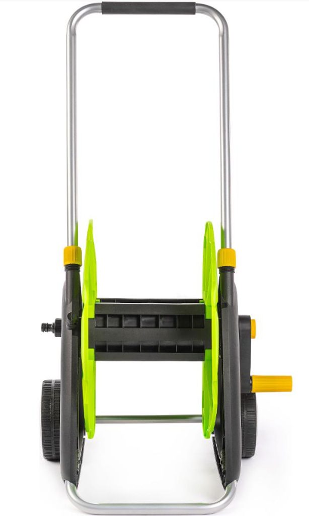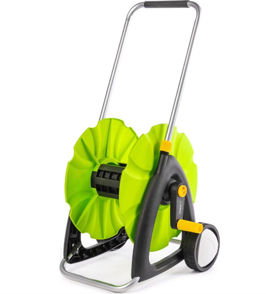 Buben je vyroben z odolného plastu s ochranou proti UV záření, díky čemuž vydrží i náročnější podmínky a intenzivní sluneční svit. Stabilní opěrka zaručí, že se vozík při manipulaci nehne z místa, takže hadici rychle navinete i odvinete.