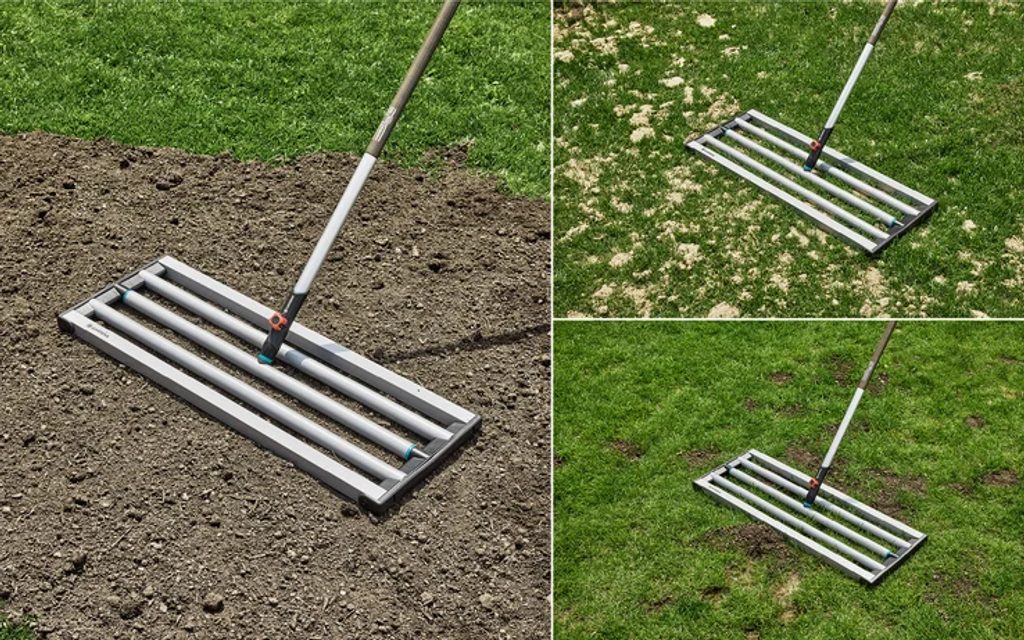 Nivelační brána GARDENA combisystem 3569-20 vám umožní rychle a přesně rozprostřít zeminu nebo písek na větších plochách – ideální při zakládání nového trávníku, vyrovnávání stávajícího, po vertikutaci i pro srovnání nerovností.