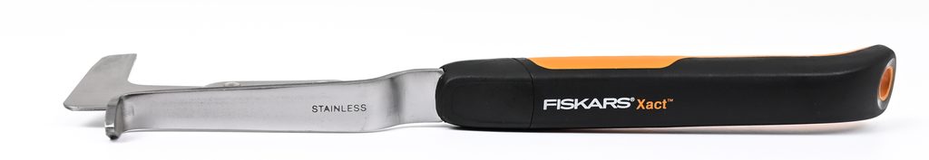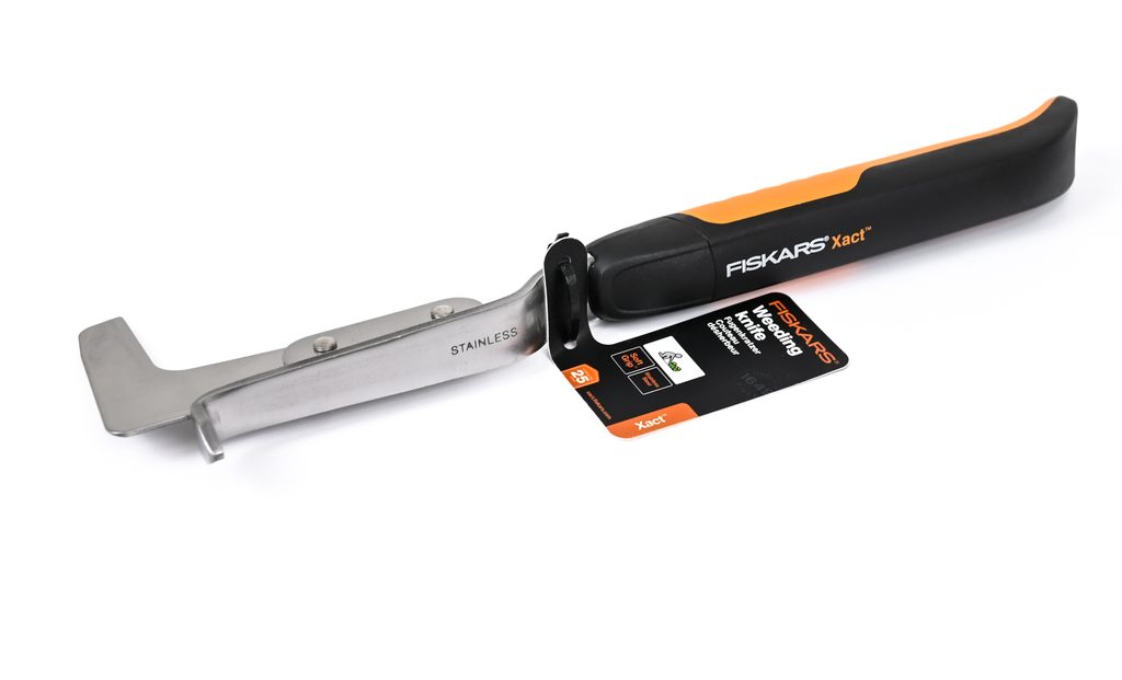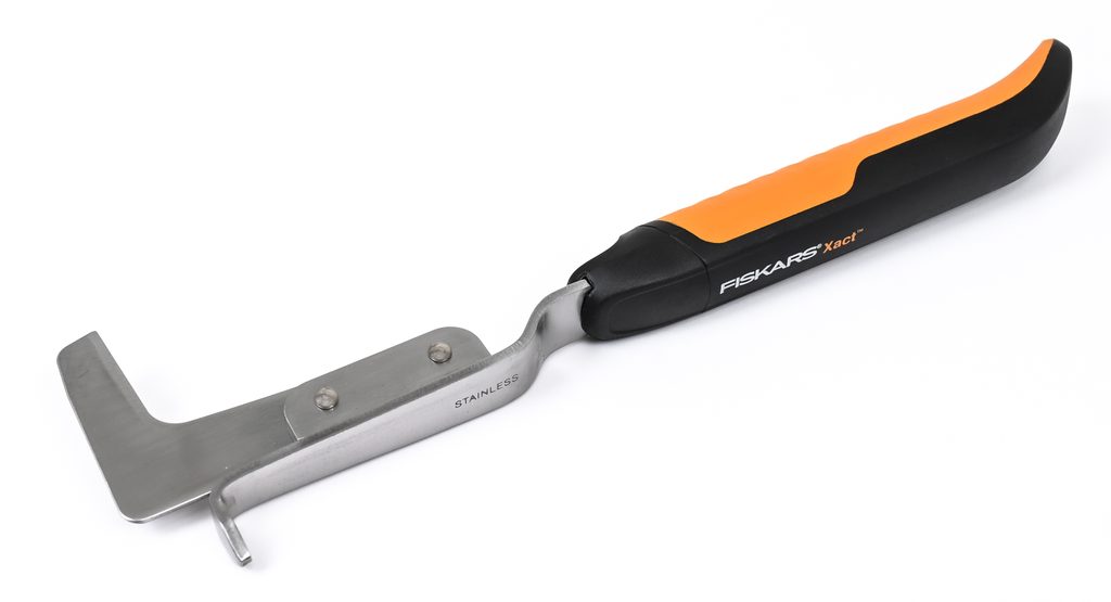 Nůž na plevel Fiskars Xact™ 1027045 je díky dvojitému ostří ideální pro efektivní čištění spár mezi dlaždicemi a jinými úzkými prostory.