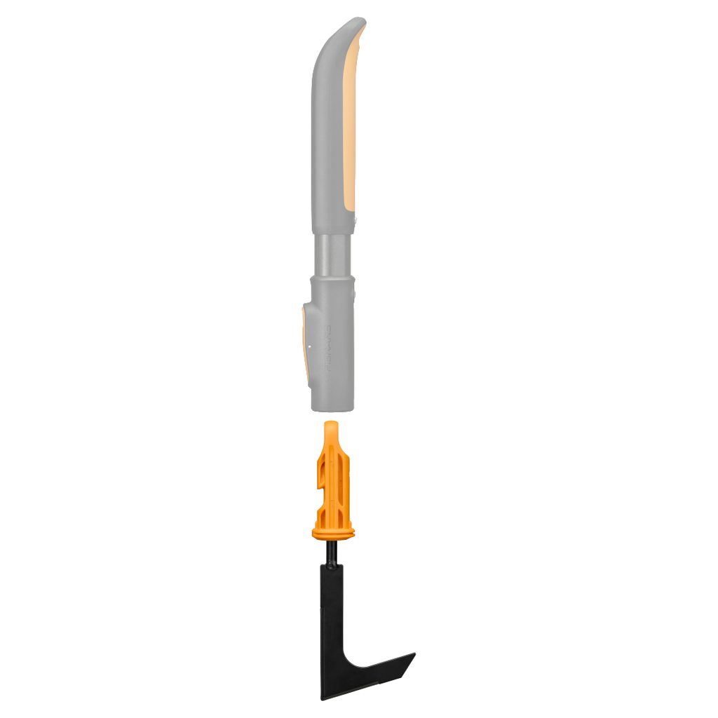 Produkt je součástí systému Fiskars OneClick – výměnného systému, ve kterém jednu násadu kombinujete s různými nástavci podle typu práce.