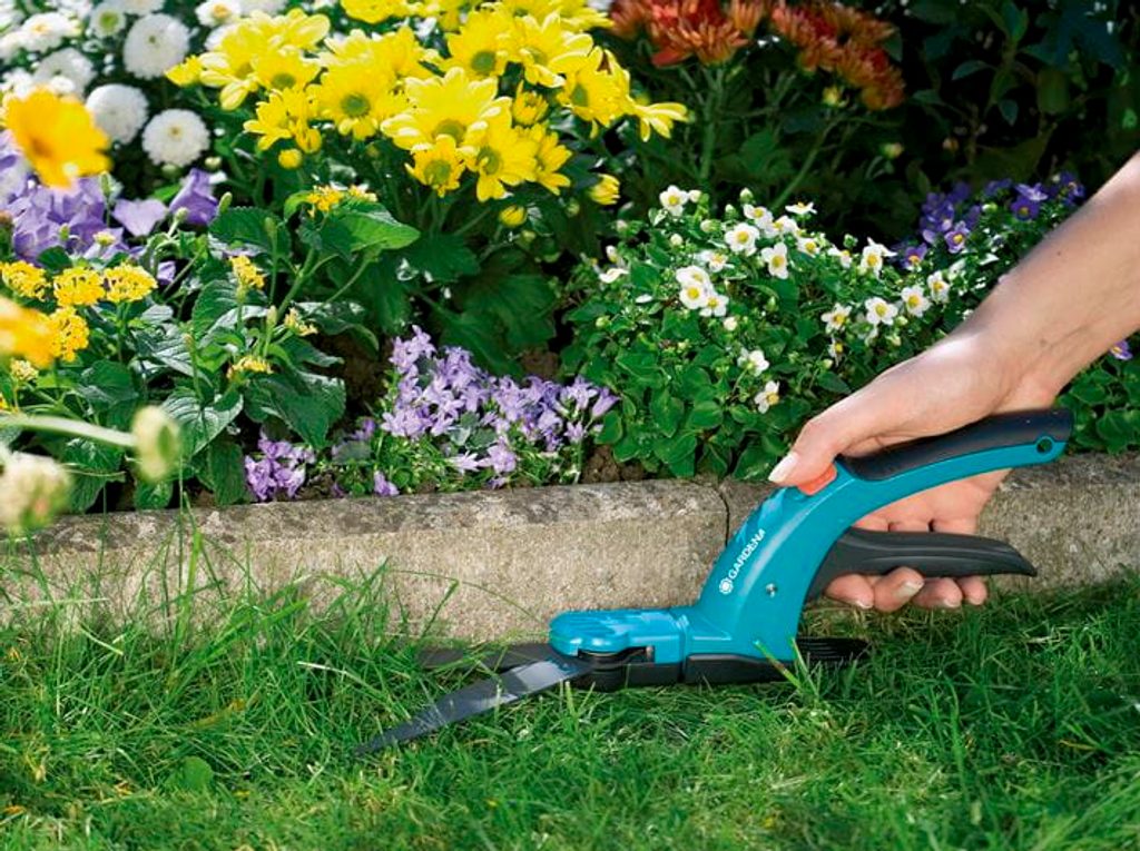 Nůžky na trávu řady GARDENA Comfort umožňují snadné a přesné zastřihování okrajů trávníku. Ergonomicky tvarovaná rukojeť se součástmi z měkčeného plastu umožňuje snadné stříhání.